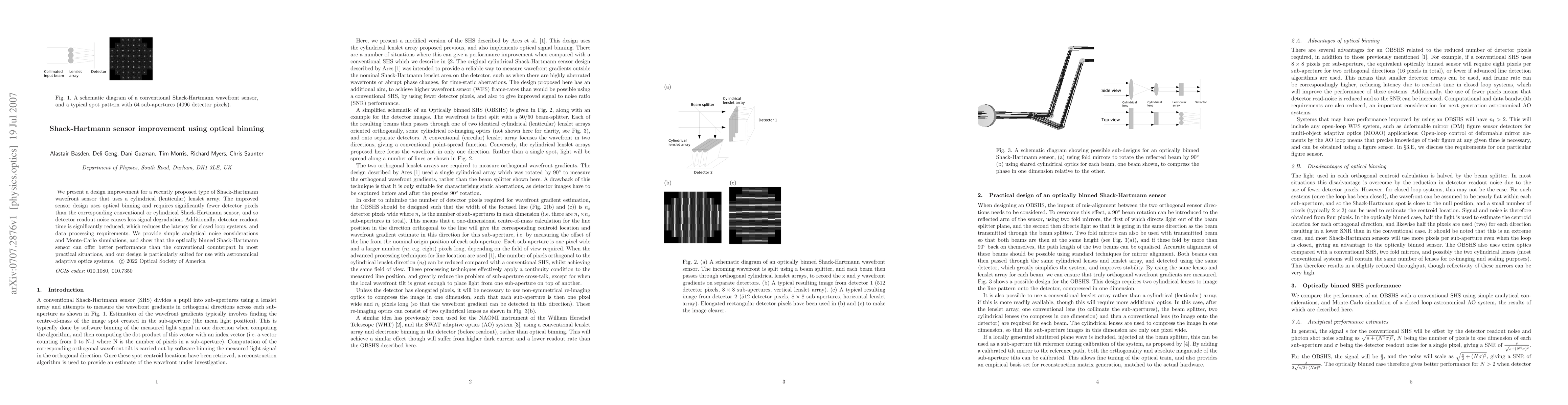 This paper proposes an improved design for a cylindrical Shack-Hartmann wavefront sensor using optical binning, which reduces detector pixel count and readout noise, thereby enhancing performance and reducing latency, especially beneficial for astronomical adaptive optics systems. Analytical and simulation results demonstrate superior performance over conventional designs.