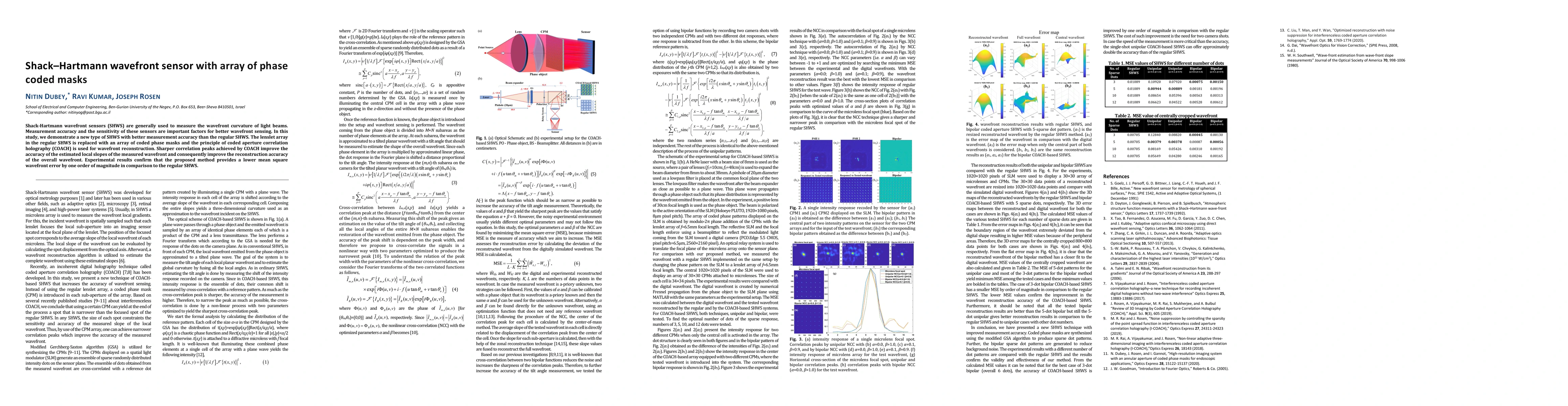 This paper introduces a novel Shack-Hartmann wavefront sensor using an array of phase coded masks instead of a lenslet array, employing coded aperture correlation holography (COACH) for improved wavefront reconstruction accuracy. Experimental results show a significant reduction in mean square wavefront error compared to traditional methods.