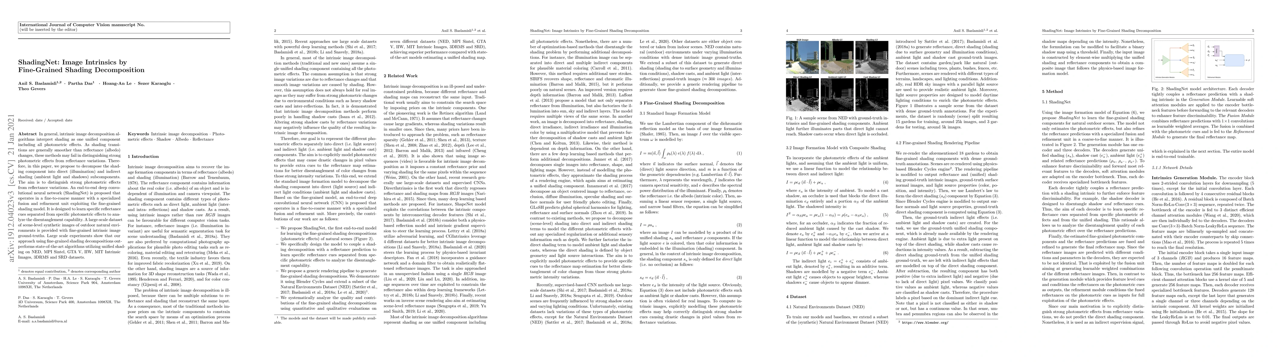 ShadingNet proposes a fine-grained shading decomposition into direct and indirect components to better distinguish photometric effects from reflectance variations. The method uses a deep convolutional neural network to achieve superior performance over existing unified shading algorithms in intrinsic image decomposition tasks.