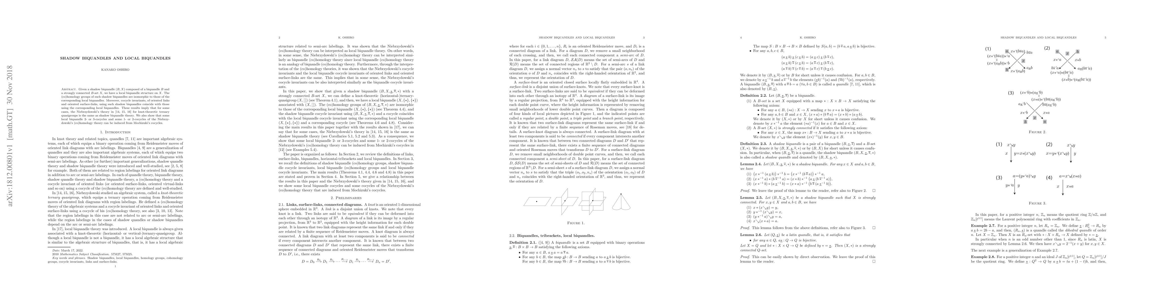 Given a shadow biquandle $(B,X)$ composed of a biquandle $B$ and a strongly connected $B$-set $X$, we have a local biquandle structure on $X$. The (co)homology groups of such shadow biquandles are isomorphic to those of the corresponding local biquandles. Moreover, cocycle invariants, of oriented links and oriented surface-links, using such shadow biquandles coincide with those using the corresponding local biquandles. These results imply that for some cases, the Niebrzydowski's theory in [14, 15, 16] for knot-theoretic ternary quasigroups is the same as shadow biquandle theory. We also show that some local biquandle $2$- or $3$-cocycles and some $1$- or $2$-cocycles of the Niebrzydowski's (co)homology theory can be induced from Mochizuki's cocycles.