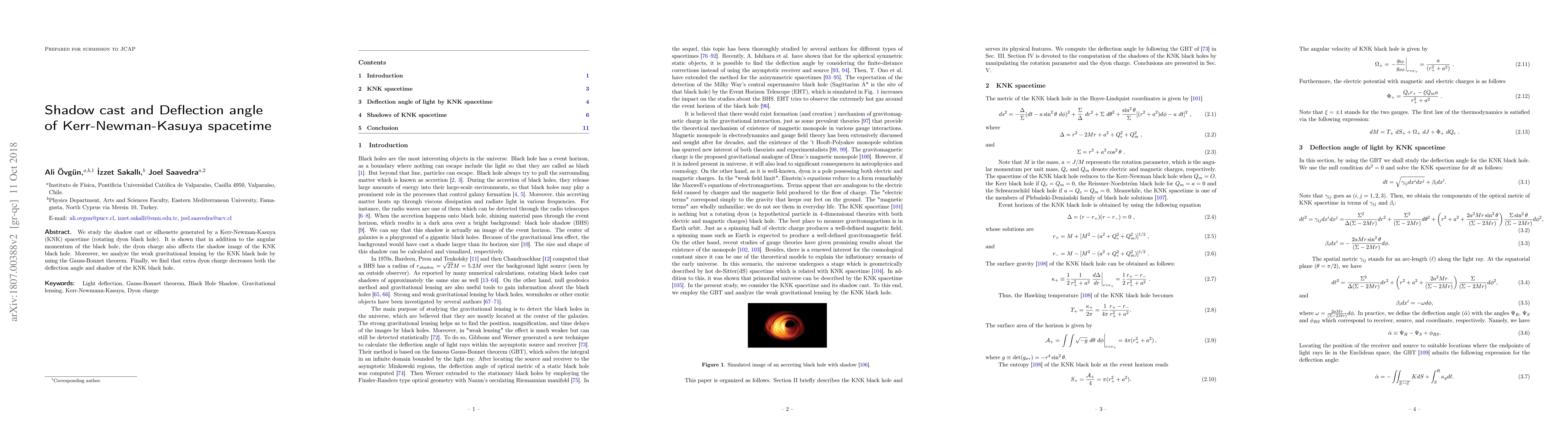 Research finds that a dyon charge affects the shadow image of a Kerr-Newman-Kasuya black hole, decreasing both deflection angle and shadow with extra charge.