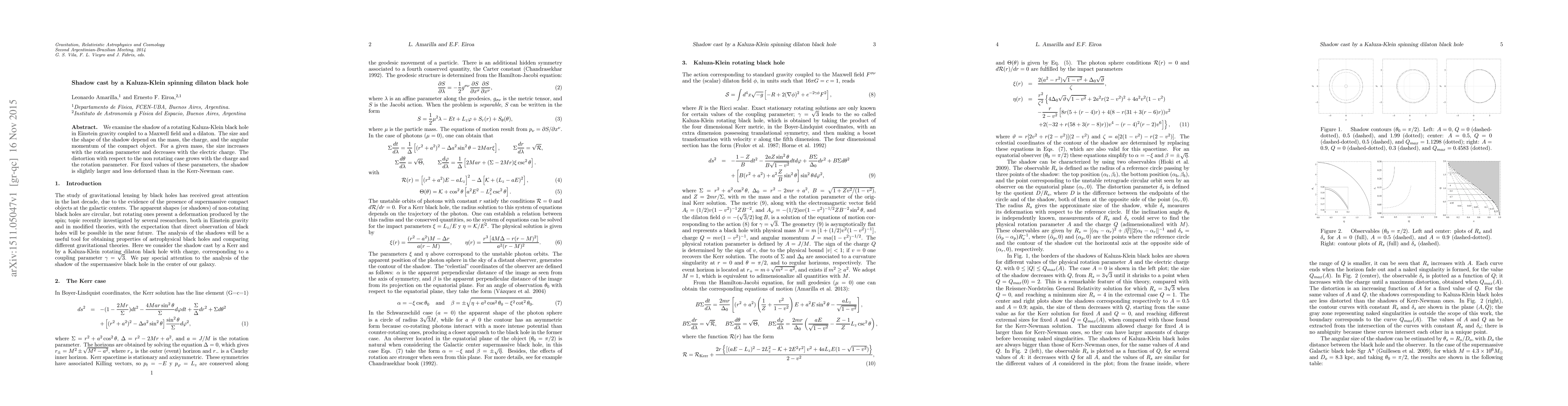 We examine the shadow of a rotating Kaluza-Klein black hole in Einstein gravity coupled to a Maxwell field and a dilaton. The size and the shape of the shadow depend on the mass, the charge, and the angular momentum of the compact object. For a given mass, the size increases with the rotation parameter and decreases with the electric charge. The distortion with respect to the non rotating case grows with the charge and the rotation parameter. For fixed values of these parameters, the shadow is slightly larger and less deformed than in the Kerr-Newman case.
