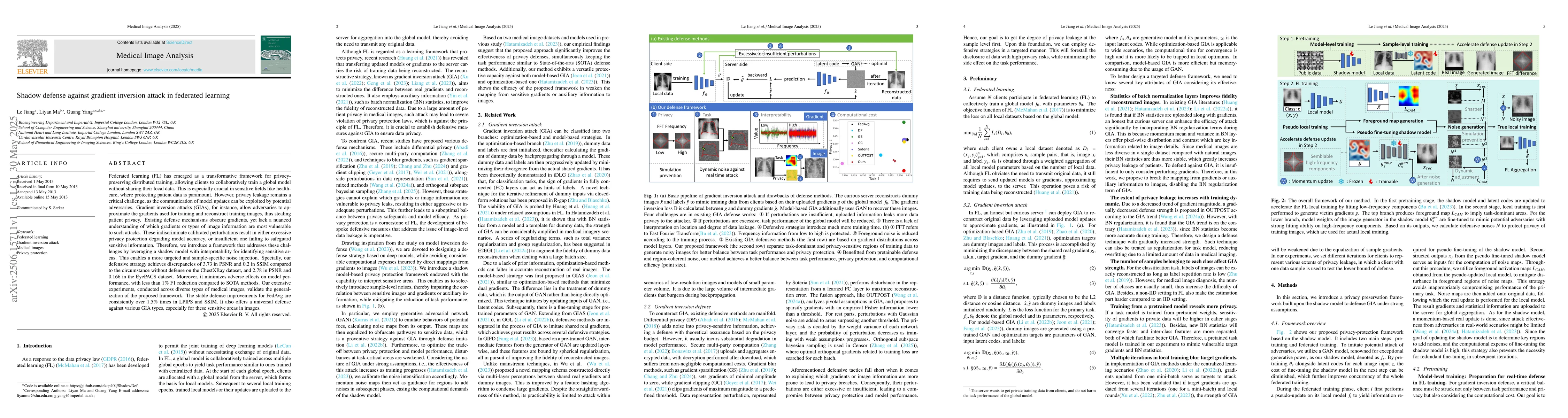 Federated learning (FL) has emerged as a transformative framework for privacy-preserving distributed training, allowing clients to collaboratively train a global model without sharing their local data. This is especially crucial in sensitive fields like healthcare, where protecting patient data is paramount. However, privacy leakage remains a critical challenge, as the communication of model updates can be exploited by potential adversaries. Gradient inversion attacks (GIAs), for instance, allow adversaries to approximate the gradients used for training and reconstruct training images, thus stealing patient privacy. Existing defense mechanisms obscure gradients, yet lack a nuanced understanding of which gradients or types of image information are most vulnerable to such attacks. These indiscriminate calibrated perturbations result in either excessive privacy protection degrading model accuracy, or insufficient one failing to safeguard sensitive information. Therefore, we introduce a framework that addresses these challenges by leveraging a shadow model with interpretability for identifying sensitive areas. This enables a more targeted and sample-specific noise injection. Specially, our defensive strategy achieves discrepancies of 3.73 in PSNR and 0.2 in SSIM compared to the circumstance without defense on the ChestXRay dataset, and 2.78 in PSNR and 0.166 in the EyePACS dataset. Moreover, it minimizes adverse effects on model performance, with less than 1\% F1 reduction compared to SOTA methods. Our extensive experiments, conducted across diverse types of medical images, validate the generalization of the proposed framework. The stable defense improvements for FedAvg are consistently over 1.5\% times in LPIPS and SSIM. It also offers a universal defense against various GIA types, especially for these sensitive areas in images.