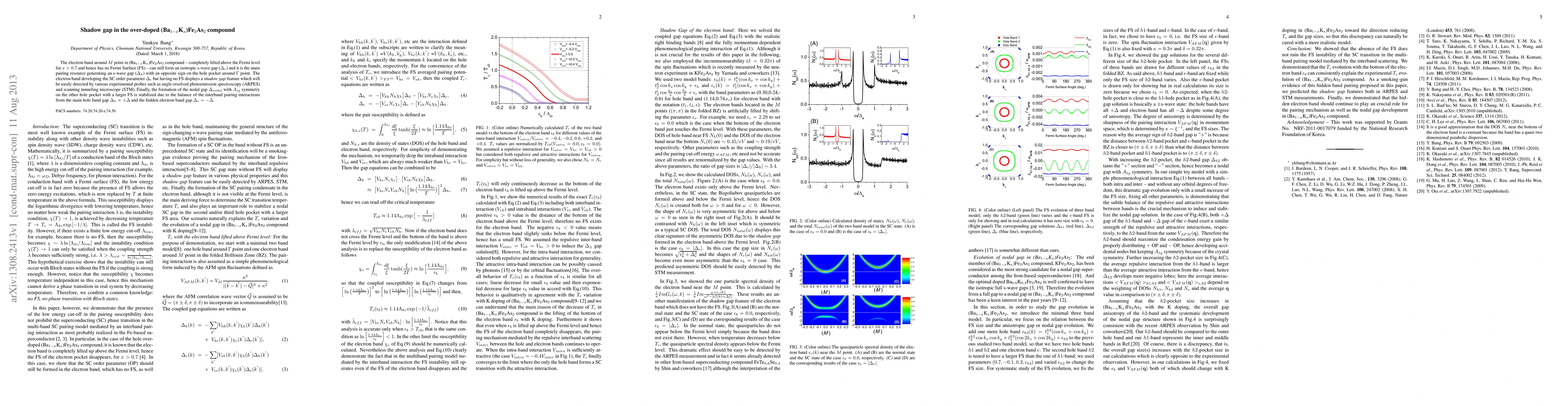The electron band around $M$ point in (Ba$_{1-x}$K$_x$)Fe$_2$As$_2$ compound -- completely lifted above the Fermi level for $x > 0.7$ and hence has no Fermi Surface (FS) -- can still form an isotropic s-wave gap ($\Delta_e$) and it is the main pairing resource generating an s-wave gap ($\Delta_h$) with an opposite sign on the hole pocket around $\Gamma$ point. The electron band developing the SC order parameter $\Delta_e$ but having no FS displays a {\it shadow gap} feature which will be easily detected by various experimental probes such as angle-resolved photoemission spectroscopy (ARPES) and scanning tunneling microscope (STM). Finally, the formation of the nodal gap $\Delta_{nodal}$ with $A_{1g}$ symmetry on the other hole pocket with a larger FS is stabilized due to the balance of the interband pairing interactions from the main hole band gap $\Delta_h=+\Delta$ and the hidden electron band gap $\Delta_e = -\Delta$.
