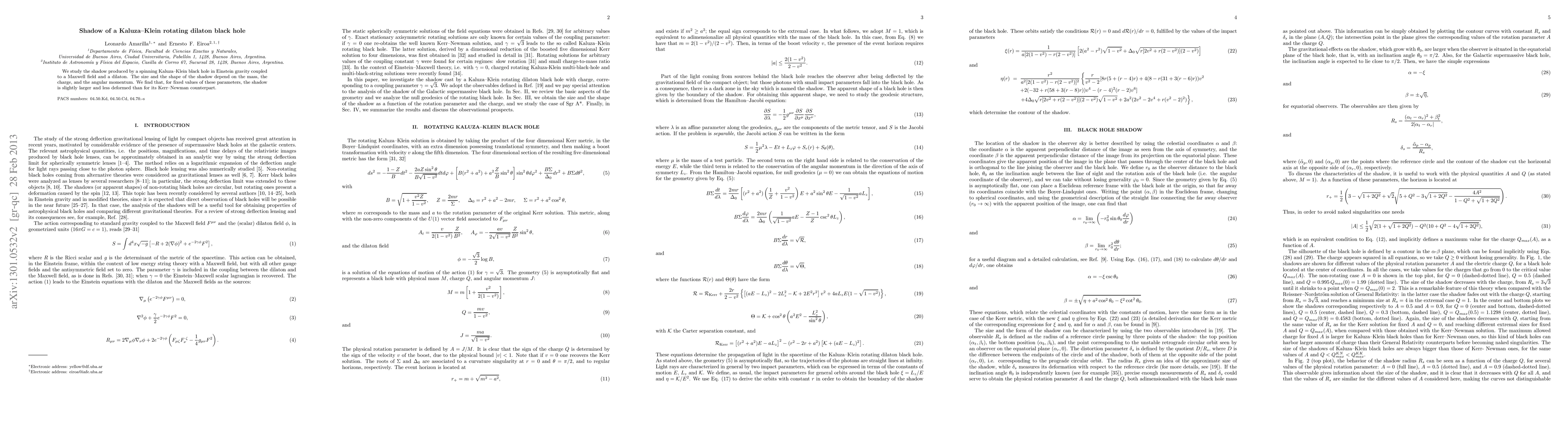 We study the shadow produced by a spinning Kaluza-Klein black hole in Einstein gravity coupled to a Maxwell field and a dilaton. The size and the shape of the shadow depend on the mass, the charge, and the angular momentum. We find that, for fixed values of these parameters, the shadow is slightly larger and less deformed than for its Kerr-Newman counterpart.