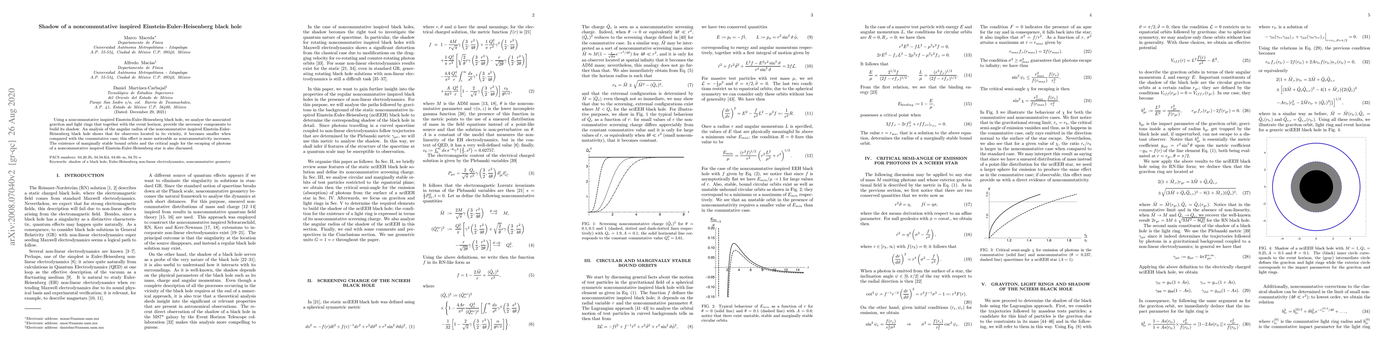 The paper presents a detailed analysis of the shadow of a noncommutative inspired Einstein-Euler-Heisenberg black hole, including graviton and light rings, using Lagrangian and Plebański metrics.