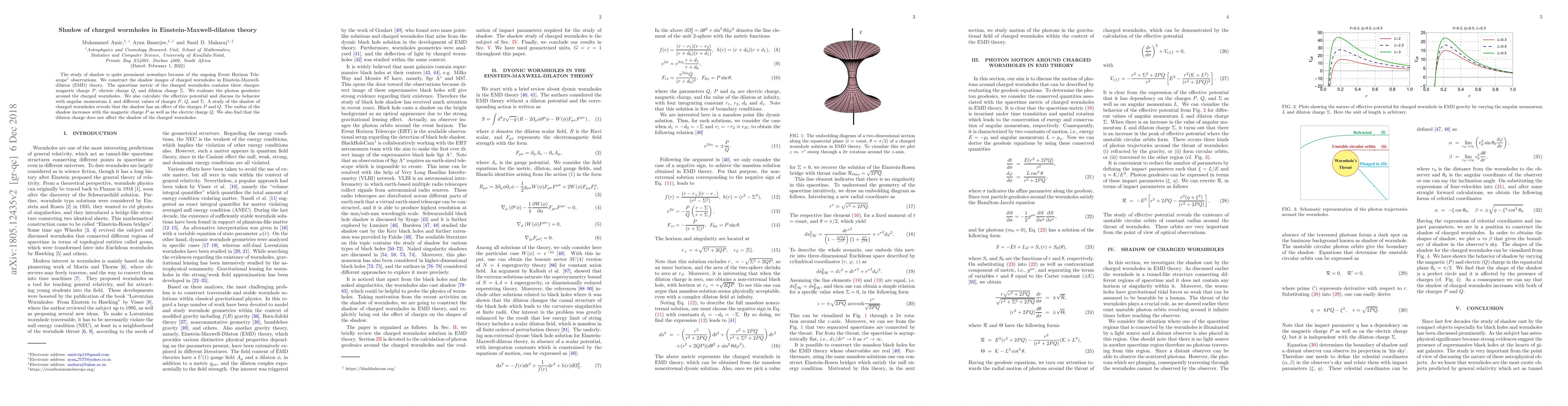 This paper investigates the shadow images of charged wormholes in Einstein-Maxwell-dilaton (EMD) theory, revealing that the shadow's radius increases with the magnetic and electric charges $P$ and $Q$, while the dilaton charge $\Sigma$ has no effect on the shadow. The study employs photon geodesics and effective potential analysis to understand these effects.