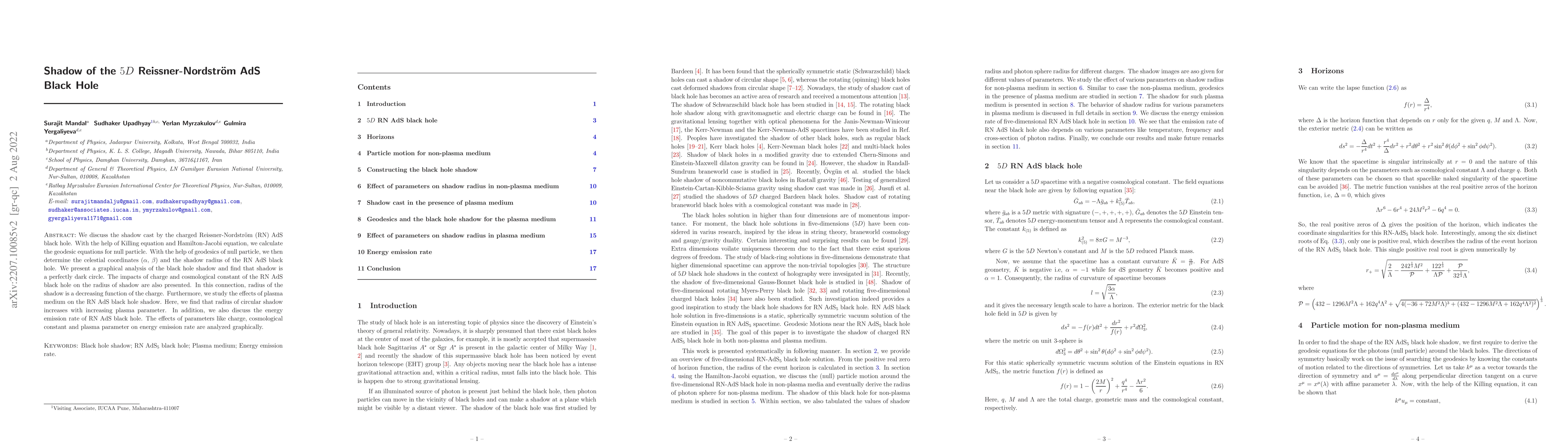 This paper investigates the shadow cast by a charged Reissner-Nordström AdS black hole, determining its radius through geodesic equations of null particles. It finds that the shadow is a perfectly dark circle, with the radius decreasing as charge increases and increasing in a plasma medium. The study also analyzes the energy emission rate of the black hole in relation to its charge, cosmological constant, and plasma parameter.