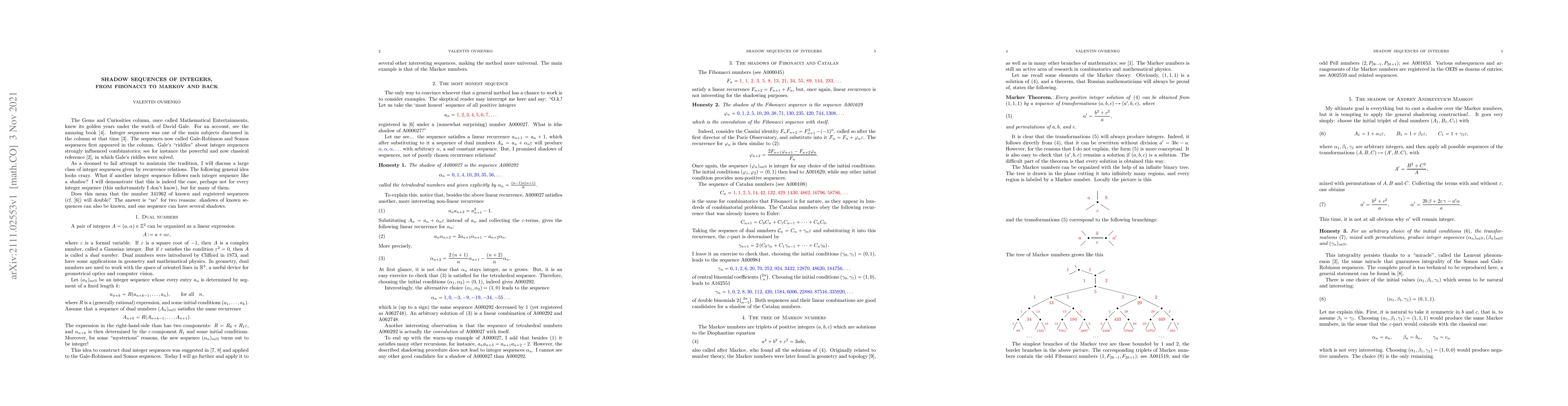 The following general idea looks crazy. What if another integer sequence follows each integer sequence like a shadow? I will demonstrate that this is indeed the case, perhaps not for every integer sequence, but for many of them.