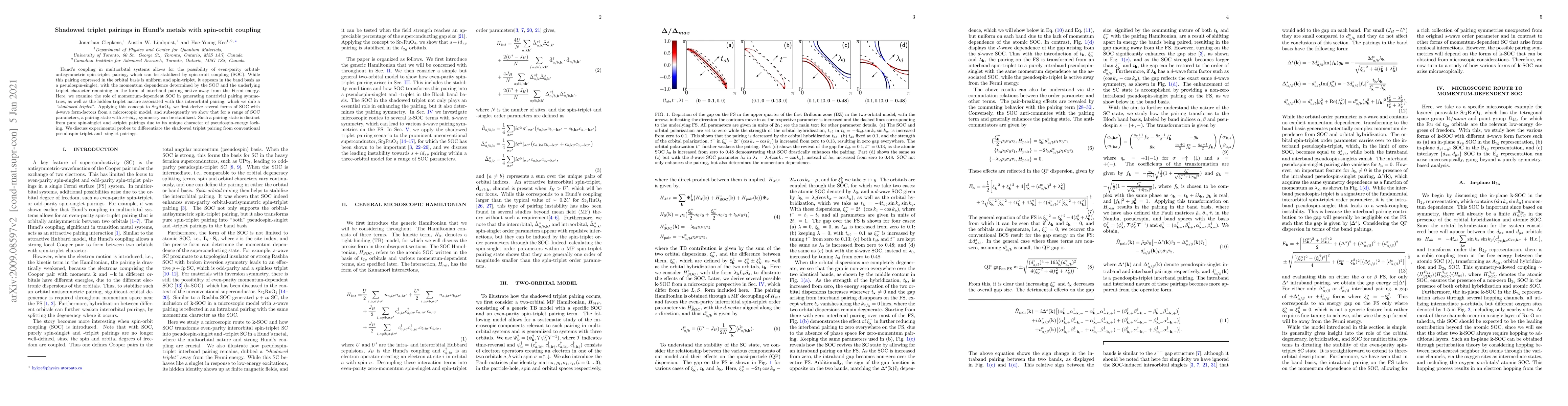 Hund's coupling in multiorbital systems allows for the possibility of even-parity orbital-antisymmetric spin-triplet pairing, which can be stabilized by spin-orbit coupling (SOC). While this pairing expressed in the orbital basis is uniform and spin-triplet, it appears in the band basis as a pseudospin-singlet, with the momentum dependence determined by the SOC and the underlying triplet character remaining in the form of interband pairing active away from the Fermi energy. Here, we examine the role of momentum-dependent SOC in generating nontrivial pairing symmetries, as well as the hidden triplet nature associated with this interorbital pairing, which we dub a "shadowed triplet". Applying this concept to Sr$_{2}$RuO$_{4}$, we first derive several forms of SOC with $d$-wave form factors from a microscopic model, and subsequently we show that for a range of SOC parameters, a pairing state with $s+id_{xy}$ symmetry can be stabilized. Such a pairing state is distinct from pure spin-singlet and -triplet pairings due to its unique character of pseudospin-energy locking. We discuss experimental probes to differentiate the shadowed triplet pairing from conventional pseudospin-triplet and -singlet pairings.