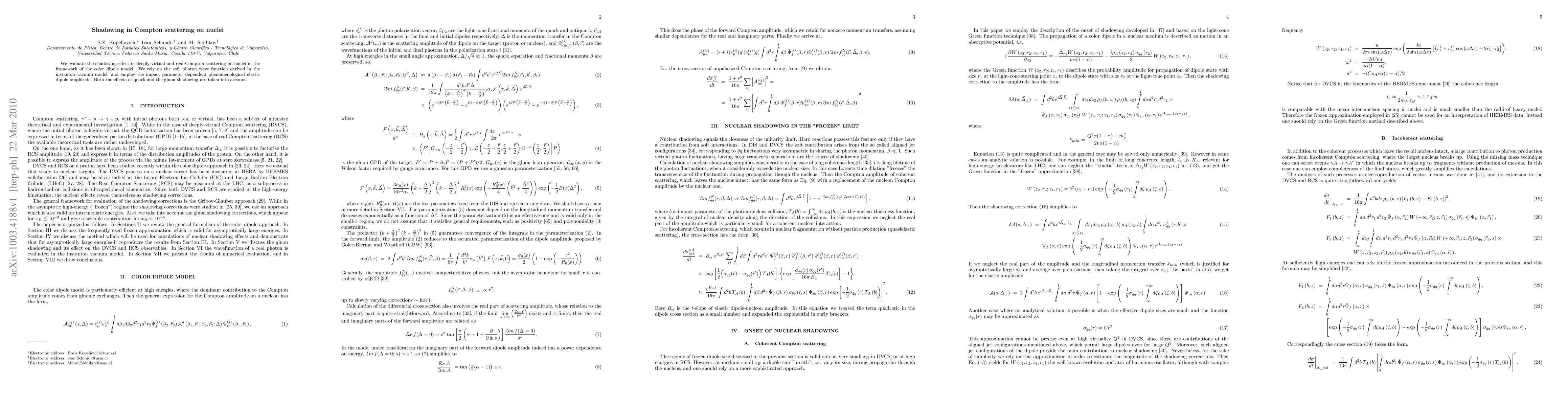 Researchers studied Compton scattering on nuclei in a model that accounts for shadowing effects, revealing insights into quark and gluon behavior.