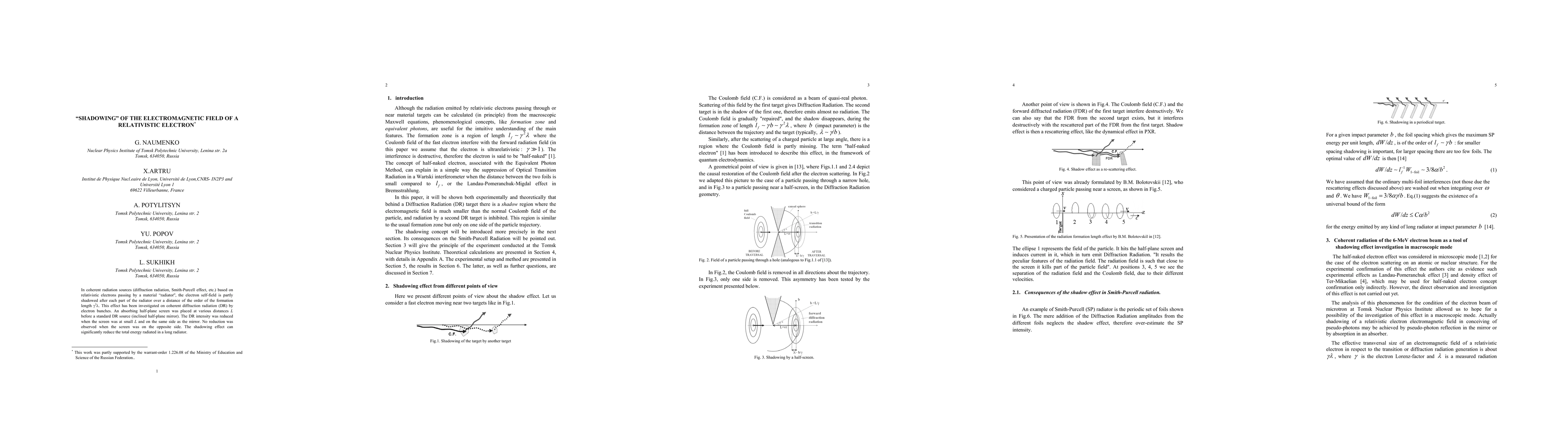 In coherent radiation sources (diffraction radiation, Smith-Purcell effect, etc.) based on relativistic electrons passing by a material radiator, the electron self-field is partly shadowed after each part of the radiator over a distance of the order of the formation length g2l. This effect has been investigated on coherent diffraction radiation (DR) by electron bunches. An absorbing half-plane screen was placed at various distances L before a standard DR source (inclined half-plane mirror). The DR intensity was reduced when the screen was at small L and on the same side as the mirror. No reduction was observed when the screen was on the opposite side. The shadowing effect can significantly reduce the total energy radiated in a long radiator.