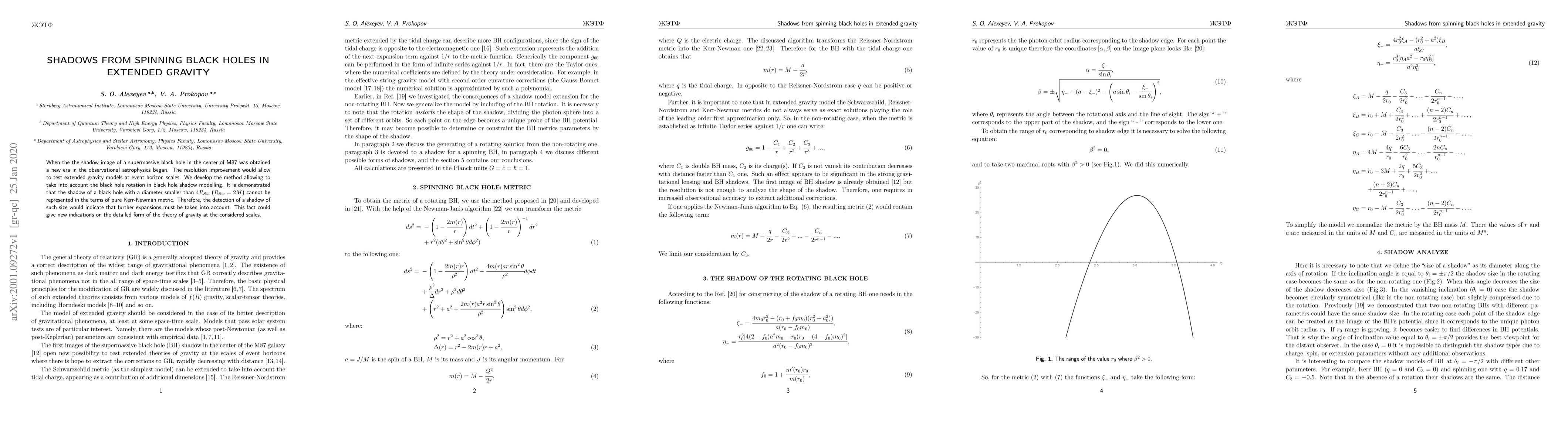 When the the shadow image of a supermassive black hole in the center of M87 was obtained a new era in the observational astrophysics began. The resolution improvement would allow to test extended gravity models at event horizon scales. We develop the method allowing to take into account the black hole rotation in black hole shadow modelling. It is demonstrated that the shadow of a black hole with a diameter smaller than $4R_{Sw}$ ($R_{Sw} = 2M$) cannot be represented in the terms of pure Kerr-Newman metric. Therefore, the detection of a shadow of such size would indicate that further expansions must be taken into account. This fact could give new indications on the detailed form of the theory of gravity at the considered scales.}