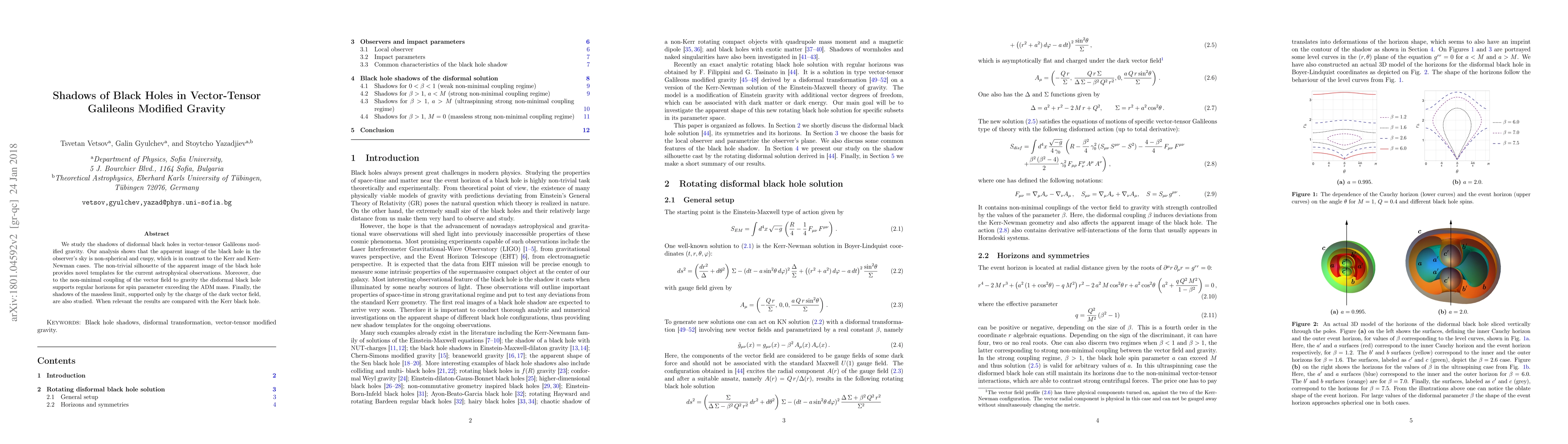 The paper presents a comprehensive analysis of black hole shadows in vector-tensor Galileon modified gravity, highlighting the unique features of disformal black holes in contrast to Kerr black holes.