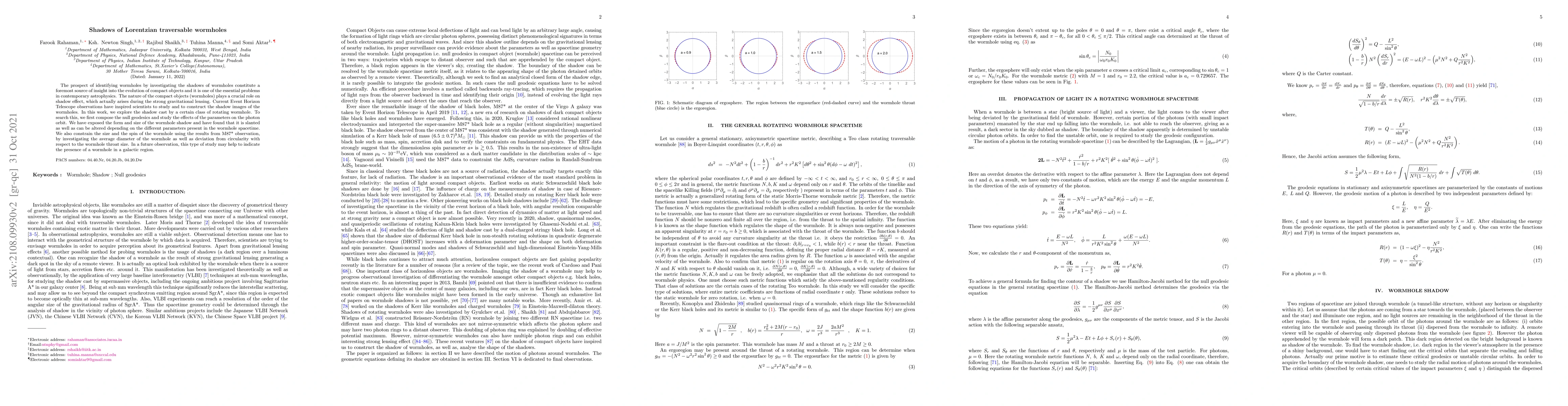 This paper investigates the shadows cast by a specific class of rotating Lorentzian traversable wormholes, using null geodesics to determine the shape and size of the shadow. The study finds that the shadow can be slanted and varies with wormhole parameters, and it uses M87* observations to constrain the wormhole's size and spin, potentially aiding future detection of wormholes in galactic regions.