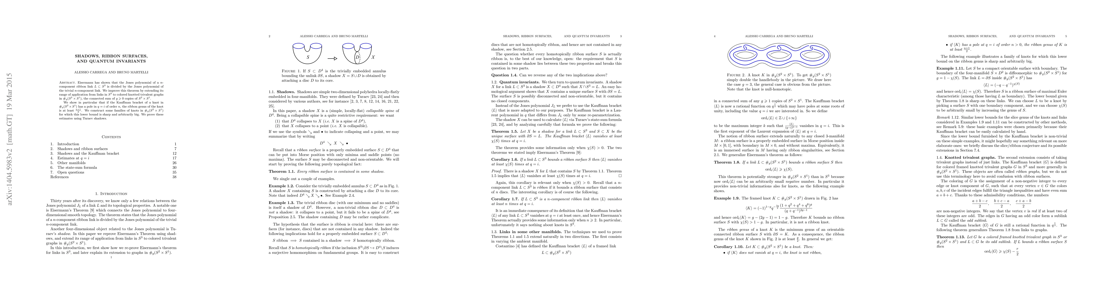 Eisermann has shown that the Jones polynomial of a $n$-component ribbon link $L\subset S^3$ is divided by the Jones polynomial of the trivial $n$-component link. We improve this theorem by extending its range of application from links in $S^3$ to colored knotted trivalent graphs in $\#_g(S^2\times S^1)$, the connected sum of $g\geqslant 0$ copies of $S^2\times S^1$. We show in particular that if the Kauffman bracket of a knot in $\#_g(S^2\times S^1)$ has a pole in $q=i$ of order $n$, the ribbon genus of the knot is at least $\frac {n+1}2$. We construct some families of knots in $\#_g(S^2\times S^1)$ for which this lower bound is sharp and arbitrarily big. We prove these estimates using Turaev shadows.