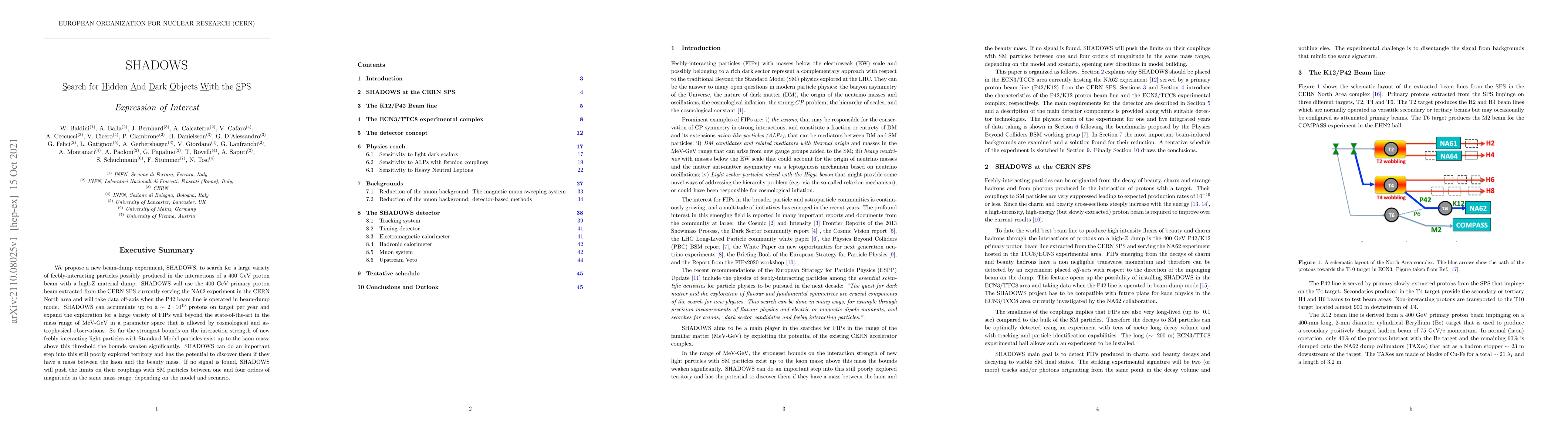 SHADOWS experiment aims to search for feebly-interacting particles, potentially discovering new physics beyond Standard Model, using a 400 GeV proton beam and accumulating up to 2 x 10^19 protons on target per year.