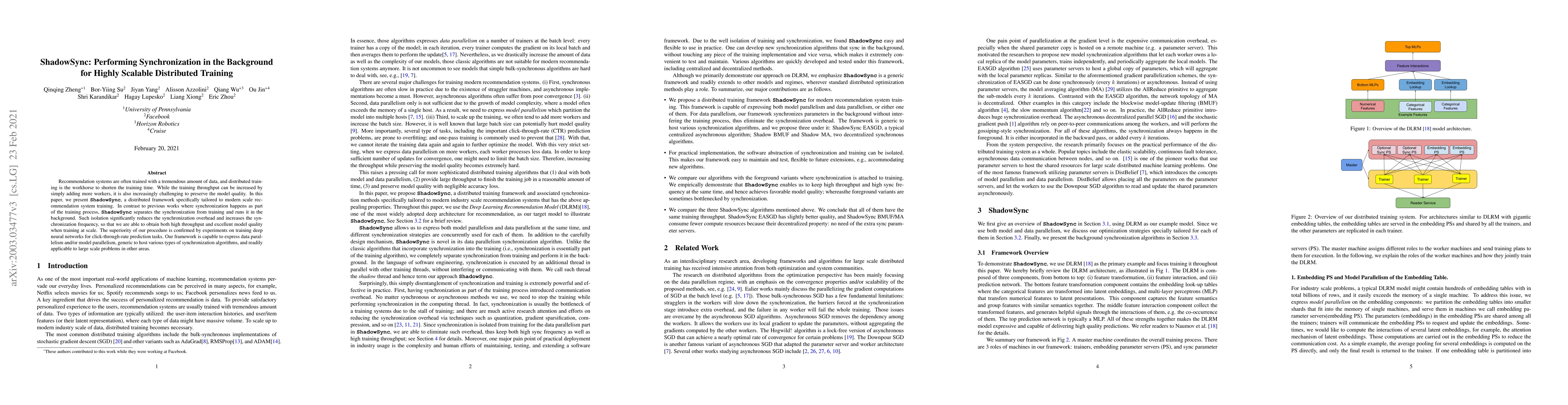 A new distributed framework called ShadowSync separates synchronization from training to improve model quality and scalability in large-scale recommendation systems. This approach significantly reduces synchronization overhead and enables high throughput and excellent model quality during training at scale.