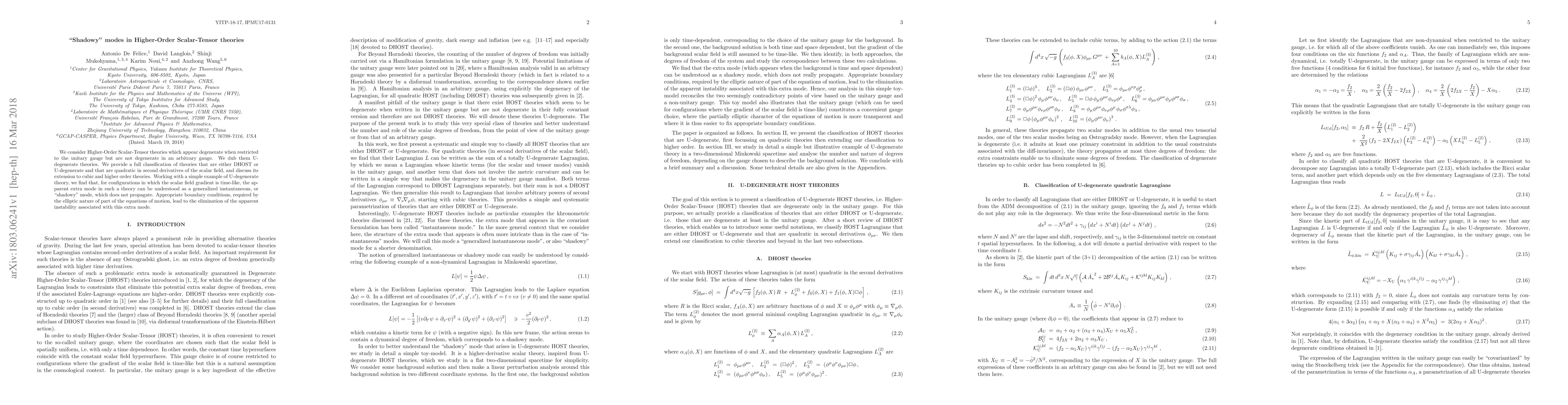 This paper classifies Higher-Order Scalar-Tensor theories, termed U-degenerate, which appear non-degenerate in arbitrary gauges despite seeming degenerate in the unitary gauge. It reveals that an apparent extra "shadowy" mode in these theories does not propagate and can be eliminated through appropriate boundary conditions, resolving potential instabilities.