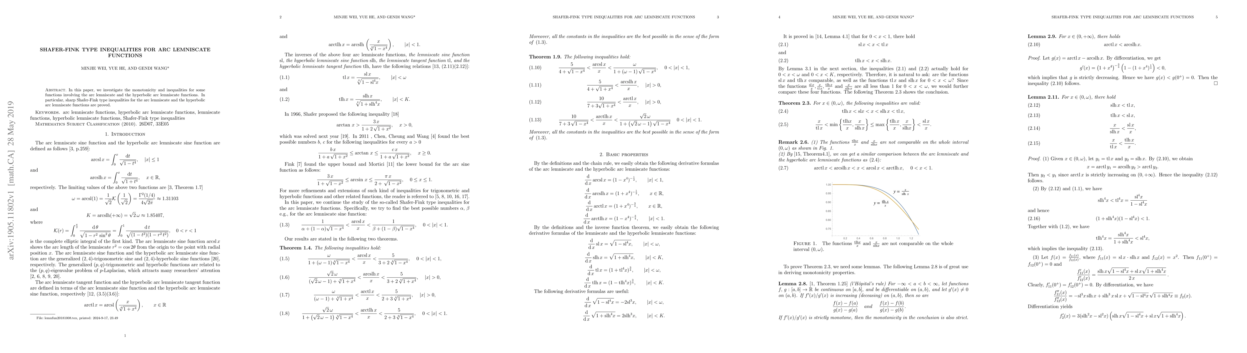 In this paper, we investigate the monotonicity and inequalities for some functions involving the arc lemniscate and the hyperbolic arc lemniscate functions. In particular, sharp Shafer-Fink type inequalities for the arc lemniscate and the hyperbolic arc lemniscate functions are proved.