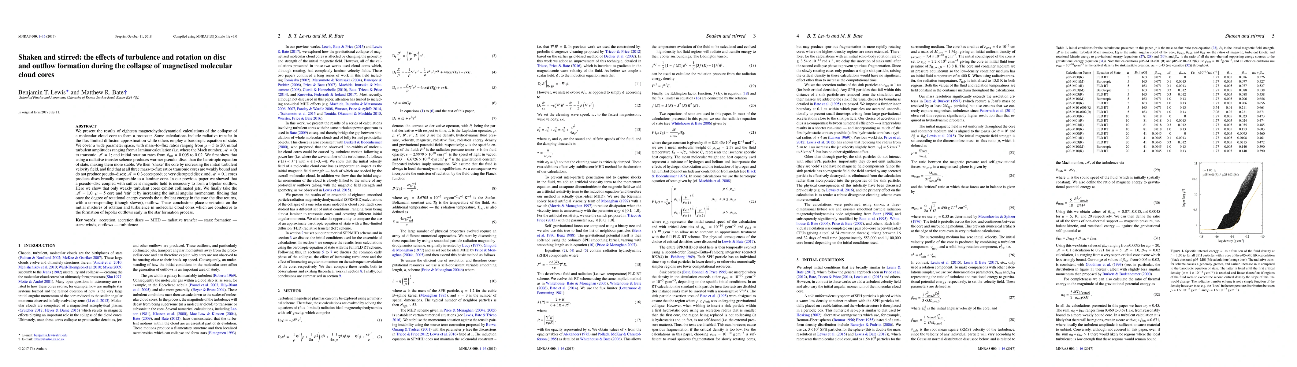 We present the results of eighteen magnetohydrodynamical calculations of the collapse of a molecular cloud core to form a protostar. Some calculations include radiative transfer in the flux-limited diffusion approximation while others employ a barotropic equation of state. We cover a wide parameter space, with mass-to-flux ratios ranging from $\mu = 5$ to $20$; initial turbulent amplitudes ranging from a laminar calculation (i.e. where the Mach number, $\mathscr{M} = 0$) to transonic $\mathscr{M} = 1$; and initial rotation rates from $\beta_\mathrm{rot} = 0.005$ to $0.02$. We first show that using a radiative transfer scheme produces warmer pseudo-discs than the barotropic equation of state, making them more stable. We then `shake' the core by increasing the initial turbulent velocity field, and find that at all three mass-to-flux ratios transonic cores are weakly bound and do not produce pseudo-discs; $\mathscr{M} = 0.3$ cores produce very disrupted discs; and $\mathscr{M} = 0.1$ cores produce discs broadly comparable to a laminar core. In our previous paper (arXiv:1701.08741), we showed that a pseudo-disc coupled with sufficient magnetic field is necessary to form a bipolar outflow. Here we show that only weakly turbulent cores exhibit collimated jets. We finally take the $\mathscr{M} = 1.0$, $\mu = 5$ core and `stir' it by increasing the initial angular momentum, finding that once the degree of rotational energy exceeds the turbulent energy in the core the disc returns, with a corresponding (though slower), outflow. These conclusions place constraints on the initial mixtures of rotation and turbulence in molecular cloud cores which are conducive to the formation of bipolar outflows early in the star formation process.