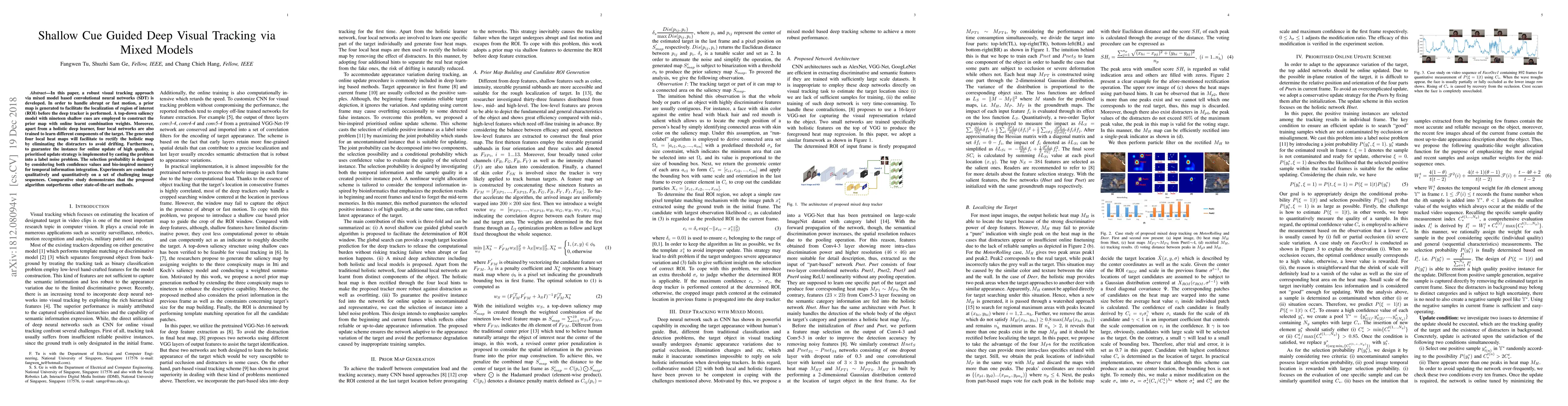 In this paper, a robust visual tracking approach via mixed model based convolutional neural networks (SDT) is developed. In order to handle abrupt or fast motion, a prior map is generated to facilitate the localization of region of interest (ROI) before the deep tracker is performed. A top-down saliency model with nineteen shallow cues are employed to construct the prior map with online learnt combination weights. Moreover, apart from a holistic deep learner, four local networks are also trained to learn different components of the target. The generated four local heat maps will facilitate to rectify the holistic map by eliminating the distracters to avoid drifting. Furthermore, to guarantee the instance for online update of high quality, a prioritised update strategy is implemented by casting the problem into a label noise problem. The selection probability is designed by considering both confidence values and bio-inspired memory for temporal information integration. Experiments are conducted qualitatively and quantitatively on a set of challenging image sequences. Comparative study demonstrates that the proposed algorithm outperforms other state-of-the-art methods.