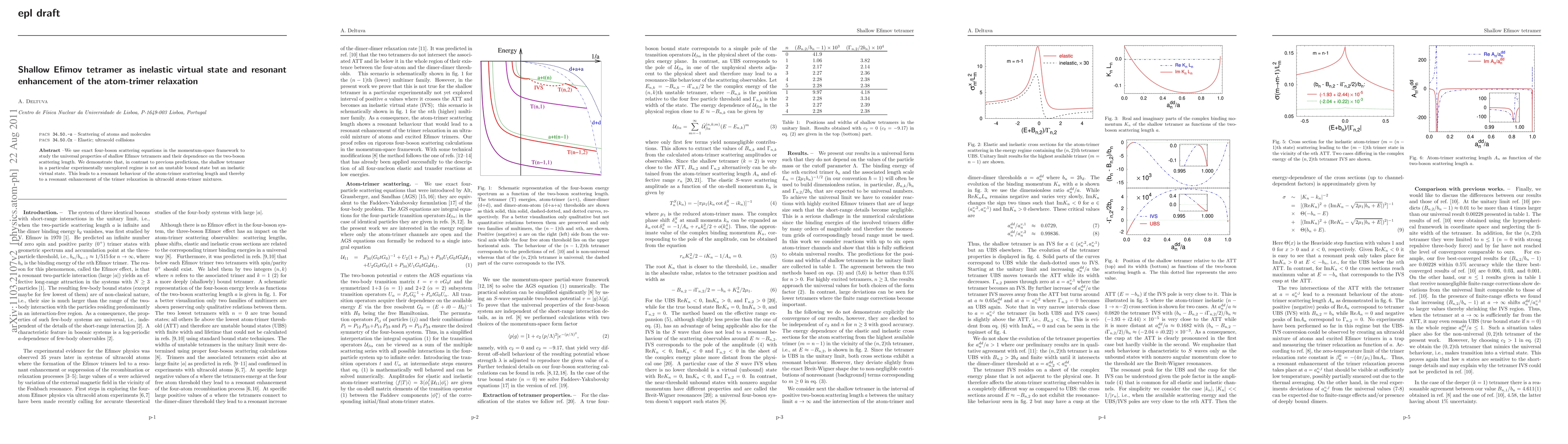 This paper reveals that shallow Efimov tetramers function as inelastic virtual states rather than unstable bound states, leading to resonant enhancement of atom-trimer relaxation in ultracold mixtures, contrary to prior predictions. The study employs exact four-boson scattering equations to explore these effects.