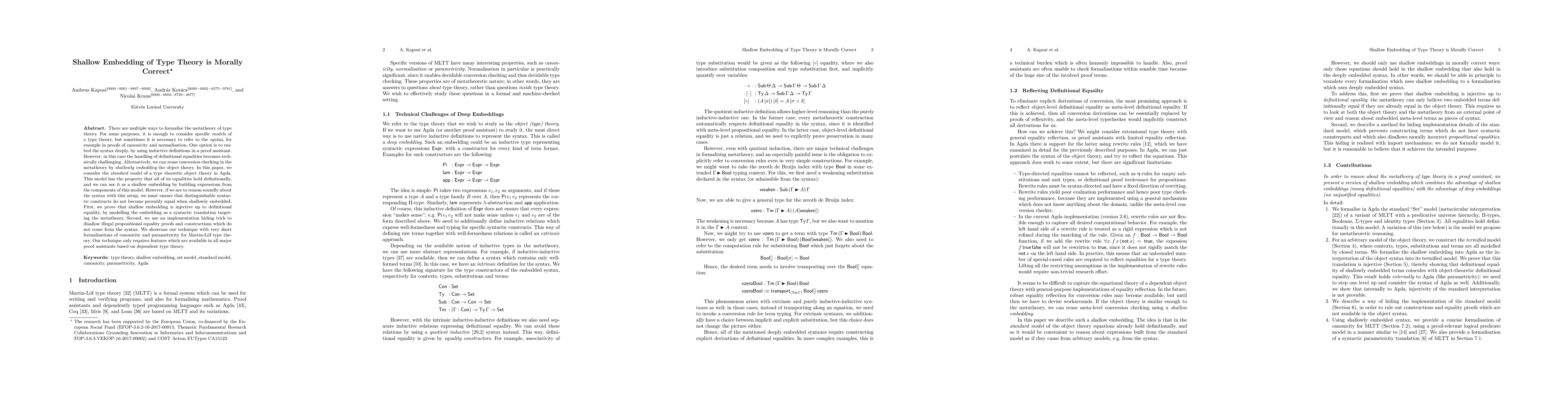 The main technical contribution of this work is the development of a shallow embedding of type theory, which provides a new perspective on the foundations of mathematics.