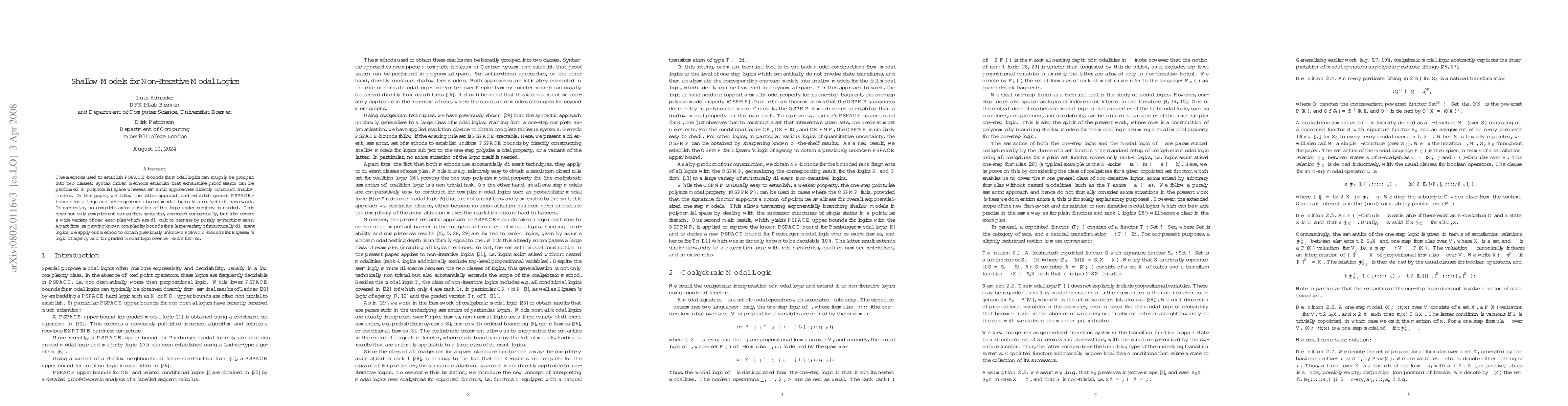 This paper establishes PSPACE-bounds for various modal logics using semantic shallow models rather than exhaustive proof search, thereby complementing previous syntactic approaches. It introduces a coalgebraic framework that applies to a broad range of modal logics without requiring complete axiomatizations, revealing new complexity bounds for Elgesem's logic of agency and graded modal logic over reflexive frames.