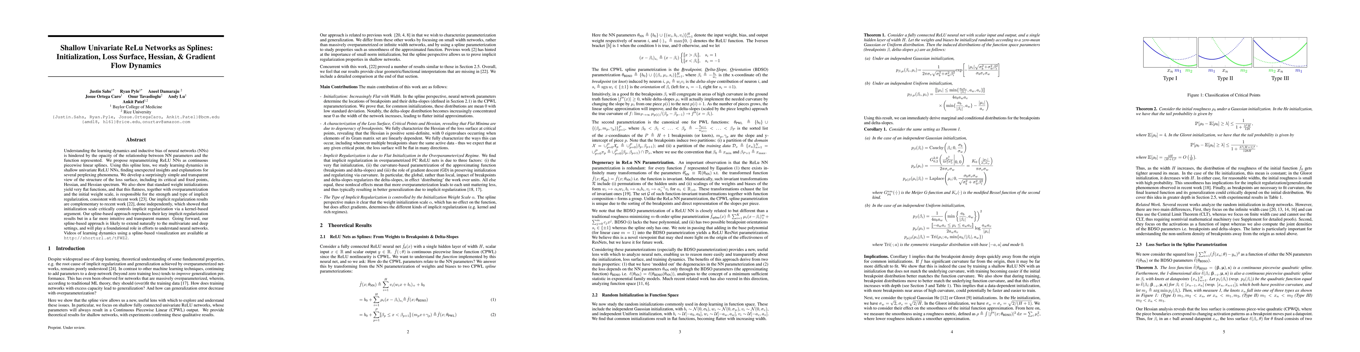 This paper proposes reparameterizing shallow univariate ReLU networks as continuous piecewise linear splines to gain insights into their learning dynamics and implicit regularization. It reveals a transparent view of the loss surface, Hessian, and gradient flow, explaining phenomena like initialization-dependent flatness and regularization.