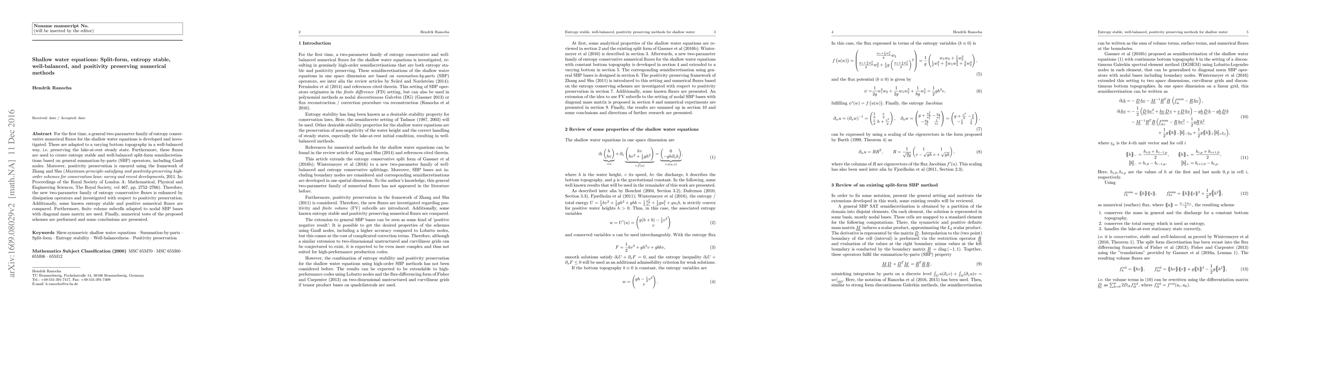 For the first time, a general two-parameter family of entropy conservative numerical fluxes for the shallow water equations is developed and investigated. These are adapted to a varying bottom topography in a well-balanced way, i.e. preserving the lake-at-rest steady state. Furthermore, these fluxes are used to create entropy stable and well-balanced split-form semidiscretisations based on general summation-by-parts (SBP) operators, including Gau{\ss} nodes. Moreover, positivity preservation is ensured using the framework of Zhang and Shu (Maximum-principle-satisfying and positivity-preserving high-order schemes for conservation laws: survey and recent developments, 2011. In: Proceedings of the Royal Society of London A: Mathematical, Physical and Engineering Sciences, The Royal Society, vol 467, pp. 2752--2766). Therefore, the new two-parameter family of entropy conservative fluxes is enhanced by dissipation operators and investigated with respect to positivity preservation. Additionally, some known entropy stable and positive numerical fluxes are compared. Furthermore, finite volume subcells adapted to nodal SBP bases with diagonal mass matrix are used. Finally, numerical tests of the proposed schemes are performed and some conclusions are presented.
