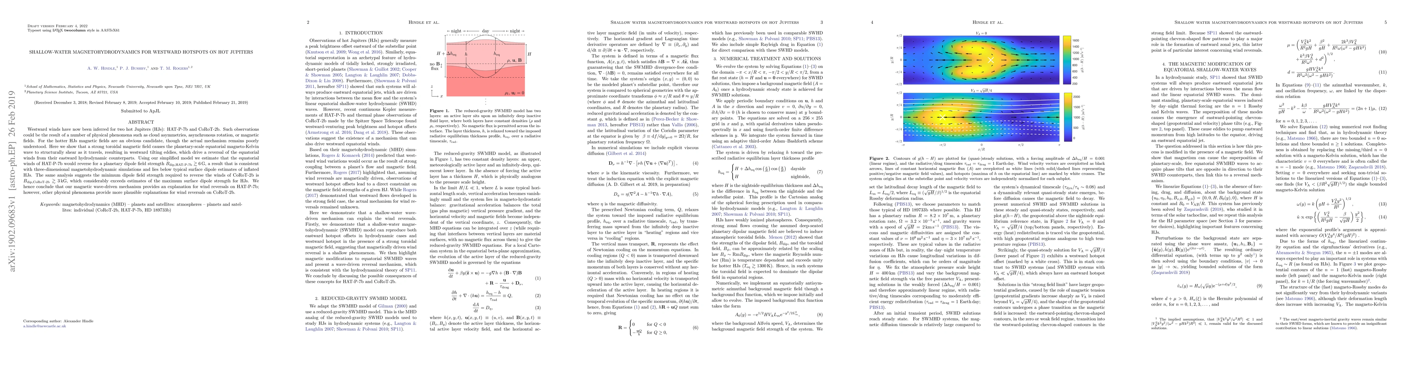 Westward winds have now been inferred for two hot Jupiters (HJs): HAT-P-7b and CoRoT-2b. Such observations could be the result of a number of physical phenomena such as cloud asymmetries, asynchronous rotation, or magnetic fields. For the hotter HJs magnetic fields are an obvious candidate, though the actual mechanism remains poorly understood. Here we show that a strong toroidal magnetic field causes the planetary-scale equatorial magneto-Kelvin wave to structurally shear as it travels, resulting in westward tilting eddies, which drive a reversal of the equatorial winds from their eastward hydrodynamic counterparts. Using our simplified model we estimate that the equatorial winds of HAT-P-7b would reverse for a planetary dipole field strength $B_{\text{dip},\text{HAT-P-7b}} \gtrsim 6 \, \mathrm{G} $, a result that is consistent with three-dimensional magnetohydrodynamic simulations and lies below typical surface dipole estimates of inflated HJs. The same analysis suggests the minimum dipole field strength required to reverse the winds of CoRoT-2b is $B_{\text{dip},\text{CoRoT-2b}} \gtrsim 3 \, \mathrm{kG}$, which considerably exceeds estimates of the maximum surface dipole strength for HJs. We hence conclude that our magnetic wave-driven mechanism provides an explanation for wind reversals on HAT-P-7b; however, other physical phenomena provide more plausible explanations for wind reversals on CoRoT-2b.