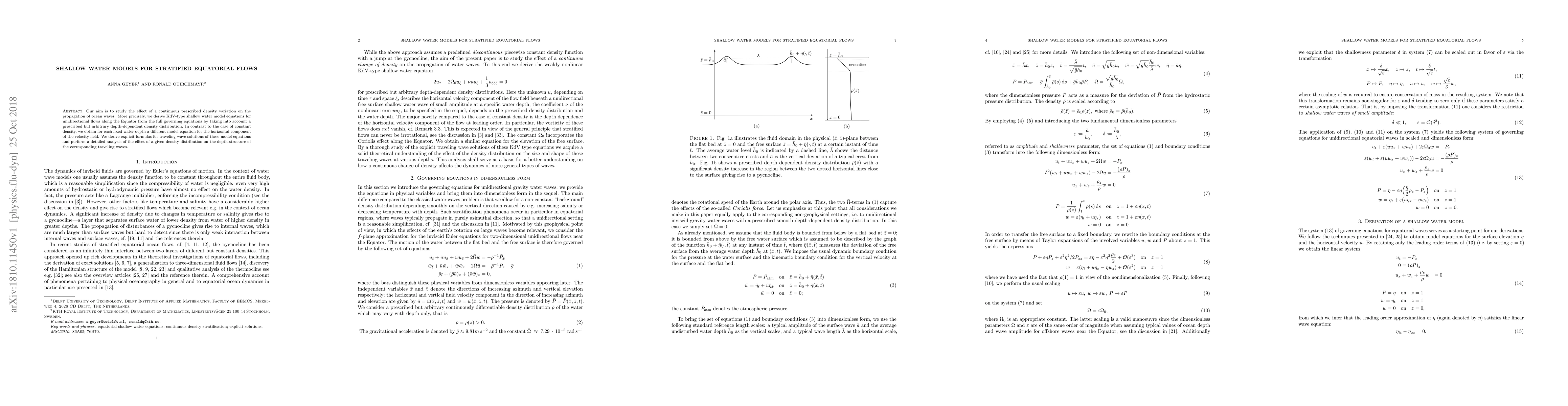 This paper develops KdV-type shallow water models for stratified equatorial ocean flows, deriving distinct model equations for varying water depths and density distributions. It also provides explicit formulas for traveling wave solutions and analyzes how density variations affect the depth-structure of these waves.