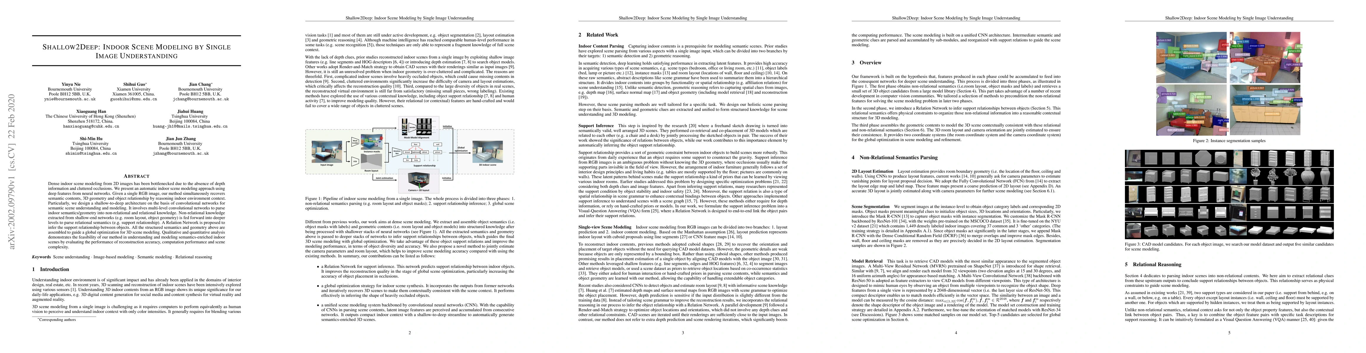This paper proposes a method for automatic indoor scene modeling from a single RGB image using deep neural networks. It employs a shallow-to-deep architecture with convolutional networks to extract semantic contents, 3D geometry, and object relationships, culminating in a global optimization for 3D scene modeling.