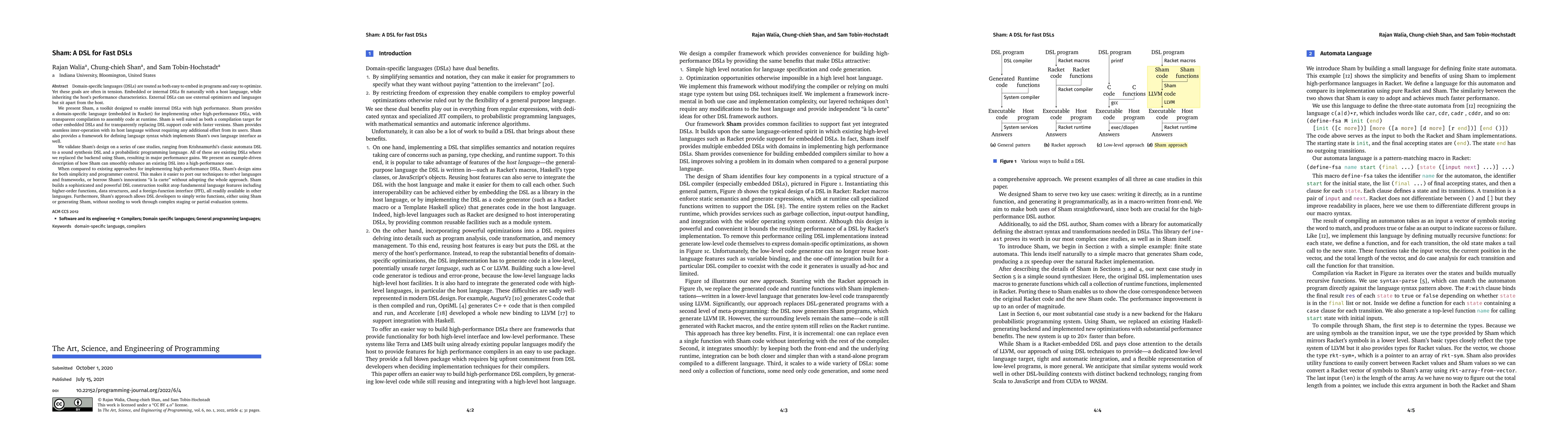 Sham is a DSL embedded within Racket designed to enable high-performance internal DSLs through transparent runtime compilation to assembly code. Sham simplifies the process of optimizing embedded DSLs while maintaining seamless inter-operation with the host language, validated by significant performance improvements across various case studies.