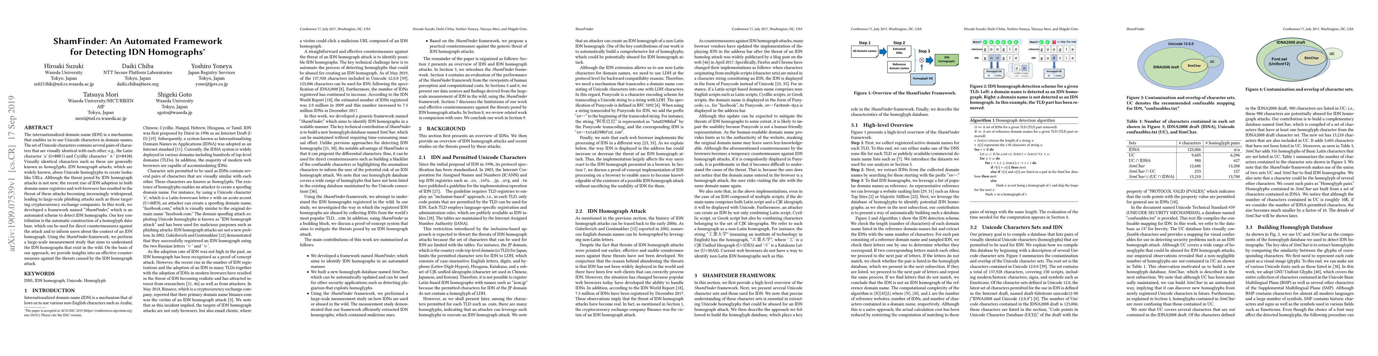 A new framework called ShamFinder detects IDN homographs, which can be used to create phishing attacks, and provides insights into effective countermeasures for the IDN homograph attack threat.
