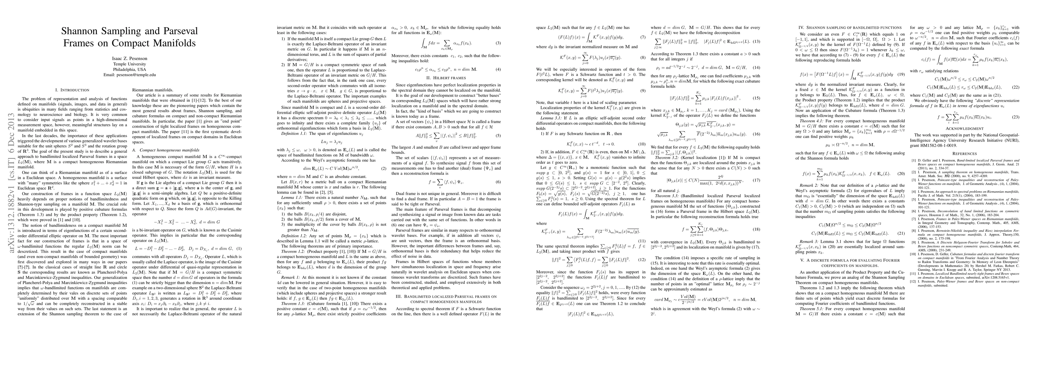 This research summarizes pioneering results on frames, Shannon sampling, and cubature formulas on Riemannian manifolds, particularly focusing on localized frames on homogeneous compact manifolds and systematic localized frames on compact domains in Euclidean spaces. These advancements provide the most general framework for such analyses on both compact and non-compact manifolds.