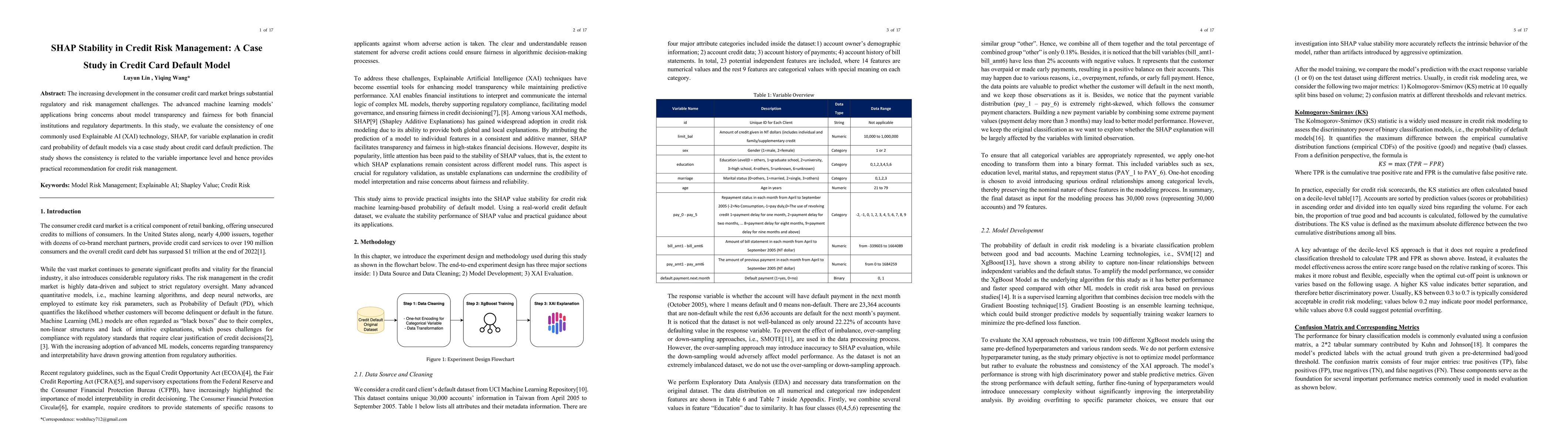 The increasing development in the consumer credit card market brings substantial regulatory and risk management challenges. The advanced machine learning models applications bring concerns about model transparency and fairness for both financial institutions and regulatory departments. In this study, we evaluate the consistency of one commonly used Explainable AI (XAI) technology, SHAP, for variable explanation in credit card probability of default models via a case study about credit card default prediction. The study shows the consistency is related to the variable importance level and hence provides practical recommendation for credit risk management