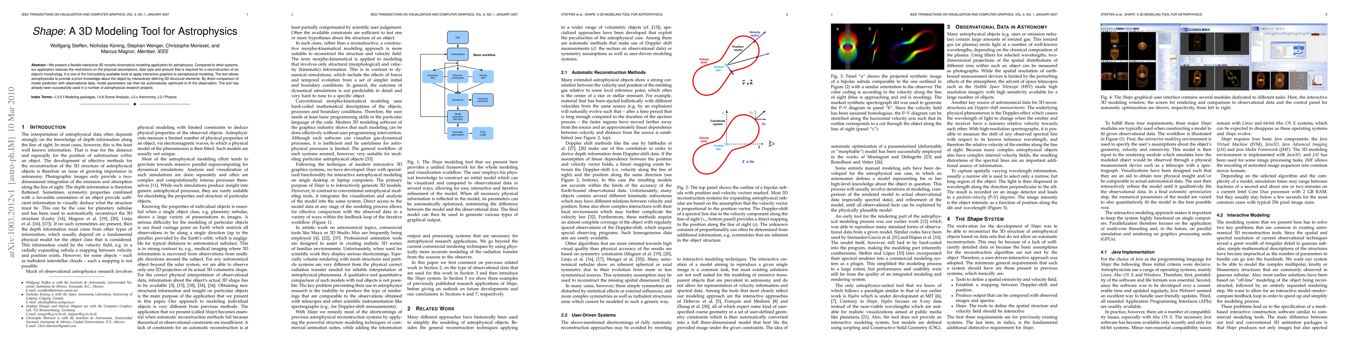 We present a flexible interactive 3D morpho-kinematical modeling application for astrophysics. Compared to other systems, our application reduces the restrictions on the physical assumptions, data type and amount that is required for a reconstruction of an object's morphology. It is one of the first publicly available tools to apply interactive graphics to astrophysical modeling. The tool allows astrophysicists to provide a-priori knowledge about the object by interactively defining 3D structural elements. By direct comparison of model prediction with observational data, model parameters can then be automatically optimized to fit the observation. The tool has already been successfully used in a number of astrophysical research projects.