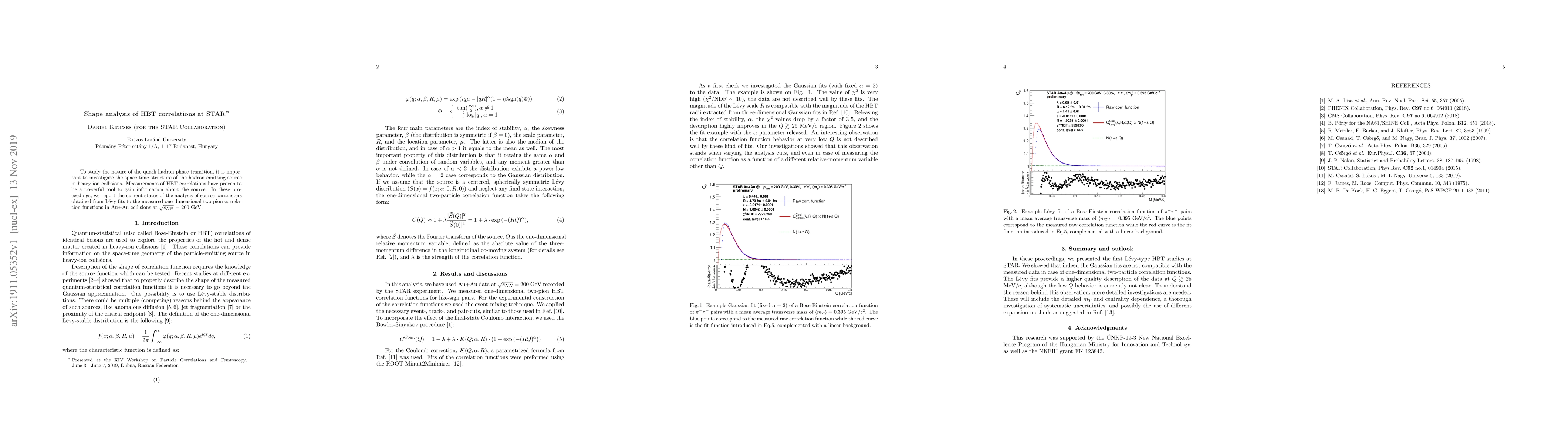This paper reports on the analysis of HBT correlations to study the space-time structure of the hadron-emitting source in heavy-ion collisions at STAR, focusing on L\'evy fits to one-dimensional two-pion correlation functions in Au+Au collisions at $\sqrt{s_{NN}}$ = 200 GeV to understand the quark-hadron phase transition.