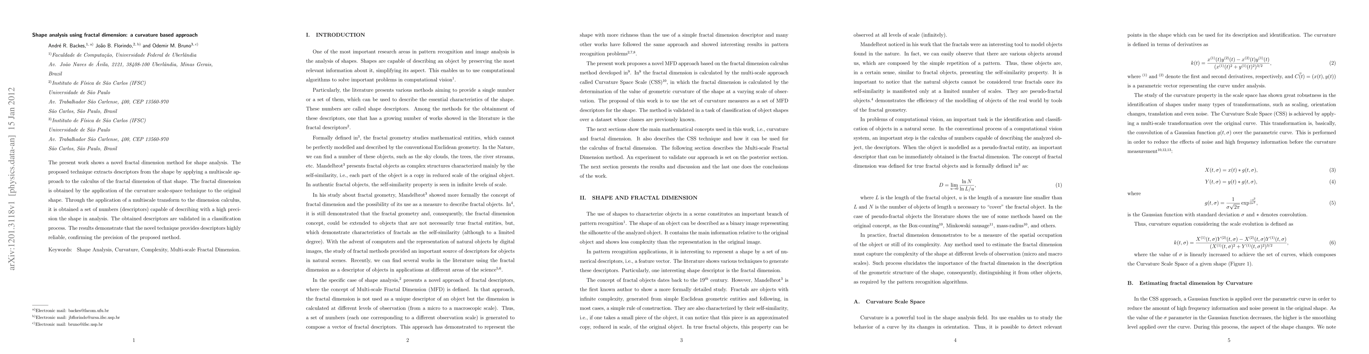 The paper introduces a curvature-based fractal dimension approach for shape analysis, utilizing a multiscale transform to obtain reliable shape descriptors.
