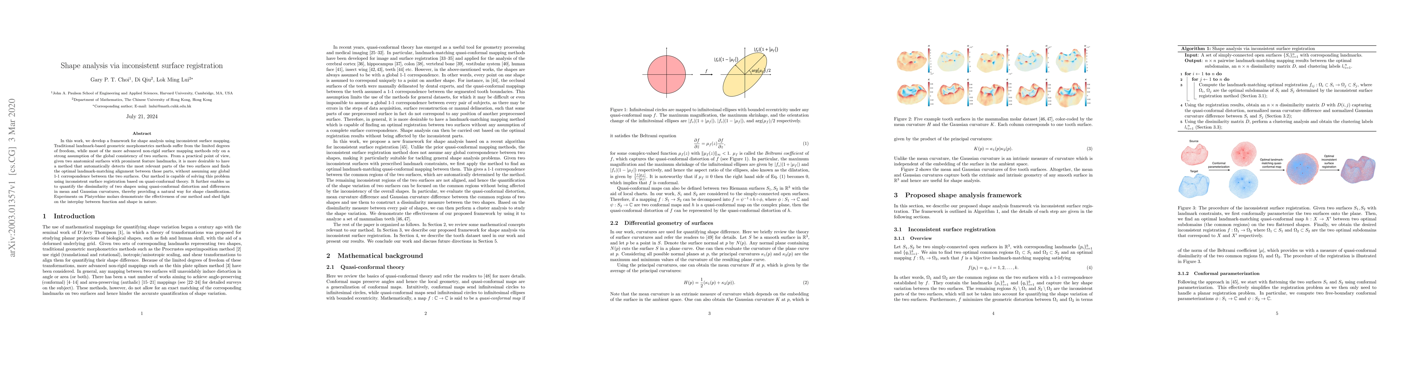 This research introduces a shape analysis framework using inconsistent surface mapping, addressing limitations of traditional landmark-based methods and global consistency assumptions in non-rigid surface mapping. The method, based on quasi-conformal theory, identifies relevant surface parts, aligns landmarks optimally, and quantifies shape dissimilarity using quasi-conformal distortion and curvature differences, proven effective in analyzing Platyrrhine molars.