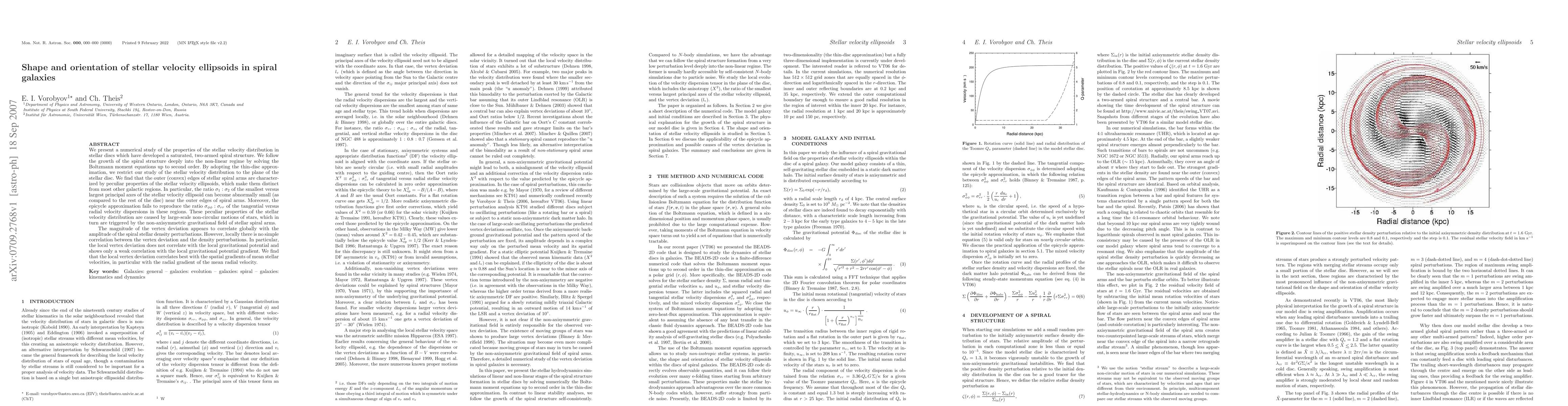 This study investigates the stellar velocity distribution in spiral galaxies, revealing that the outer edges of spiral arms exhibit unique velocity ellipsoid properties, with the ratio of the smallest to largest axes becoming unusually small. These anomalies are attributed to large-scale non-circular stellar motions driven by the spiral arms' gravitational field.