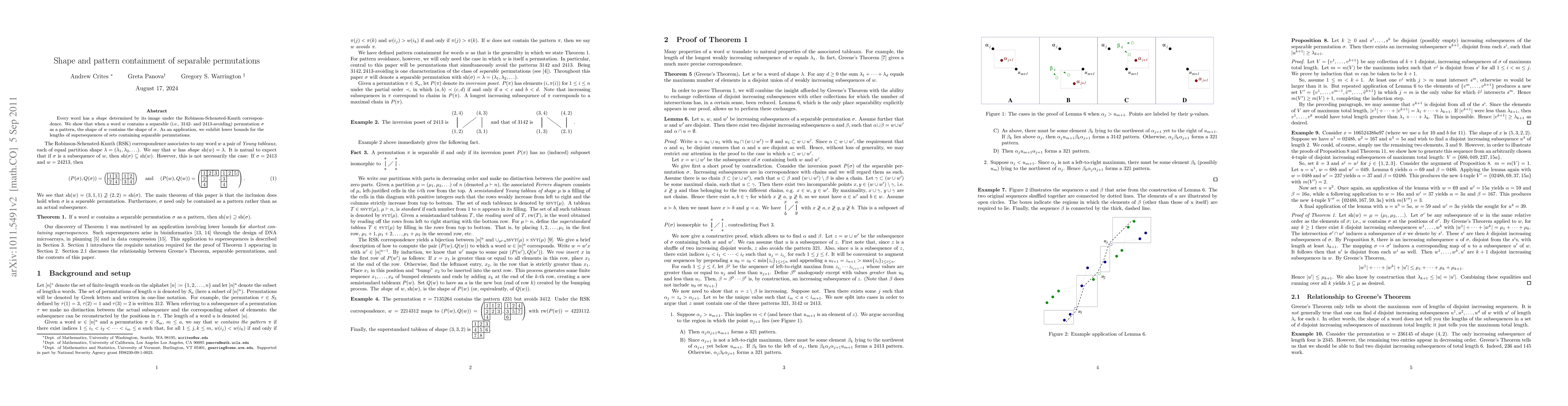 A research paper shows that if a word contains a separable permutation as a pattern, its shape also contains the shape of that permutation. This has implications for lower bounds on supersequences of sets containing these permutations.