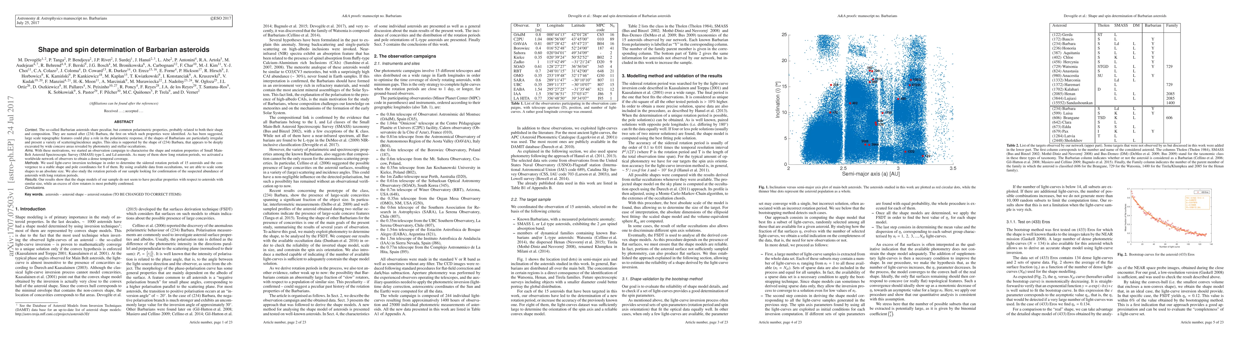 This study investigates the shape and spin of Barbarian asteroids, characterized by unique polarimetric properties, using light-curve inversion and stellar occultations to determine rotation periods and shapes. The findings suggest that while the shapes are not unusually irregular, there is a confirmed abundance of asteroids with long rotation periods.