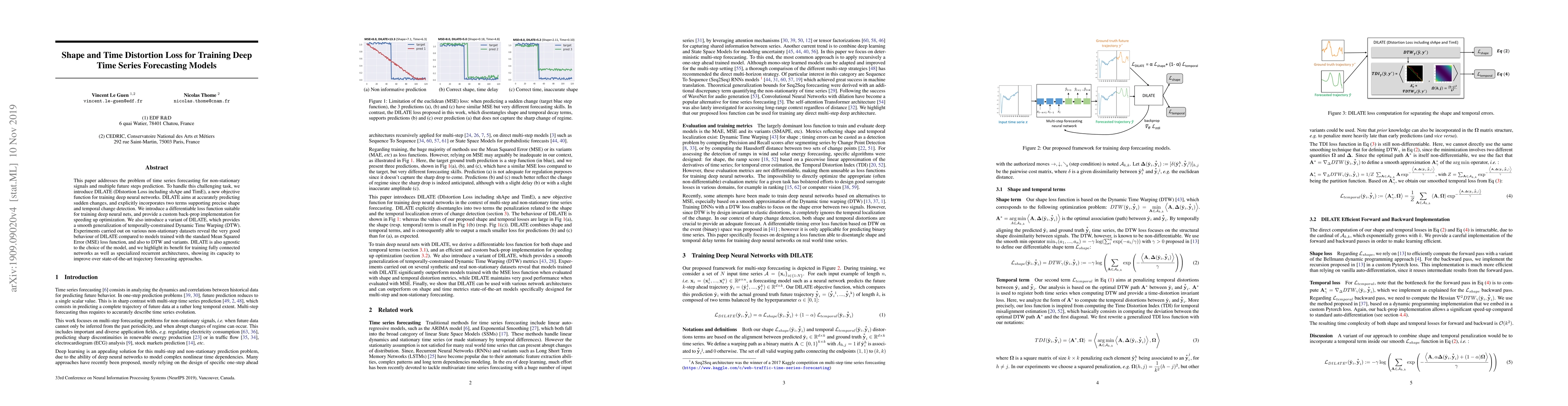 This paper proposes DILATE, a novel loss function for training deep neural networks to forecast non-stationary time series, emphasizing shape and time distortion for accurate predictions of sudden changes. Experiments show DILATE outperforms standard MSE and Dynamic Time Warping, benefiting both fully connected and recurrent networks.