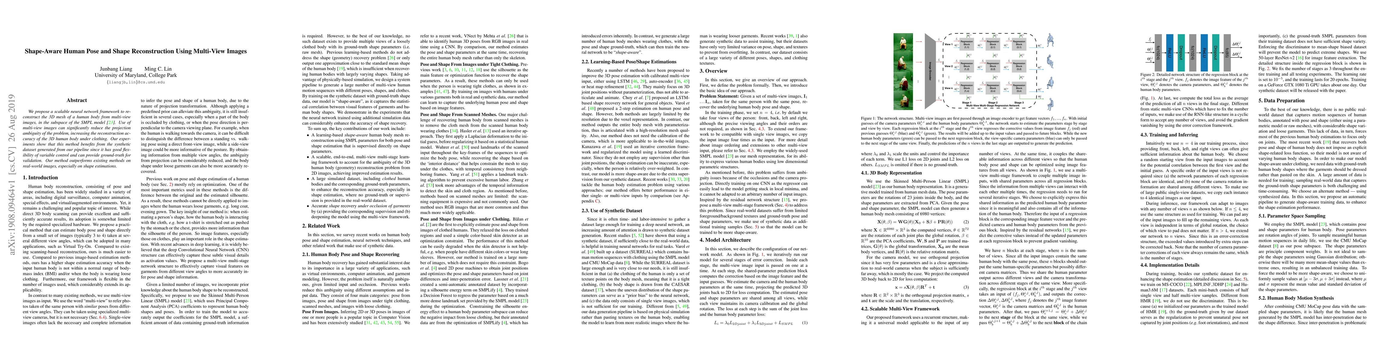 We propose a scalable neural network framework to reconstruct the 3D mesh of a human body from multi-view images, in the subspace of the SMPL model. Use of multi-view images can significantly reduce the projection ambiguity of the problem, increasing the reconstruction accuracy of the 3D human body under clothing. Our experiments show that this method benefits from the synthetic dataset generated from our pipeline since it has good flexibility of variable control and can provide ground-truth for validation. Our method outperforms existing methods on real-world images, especially on shape estimations.