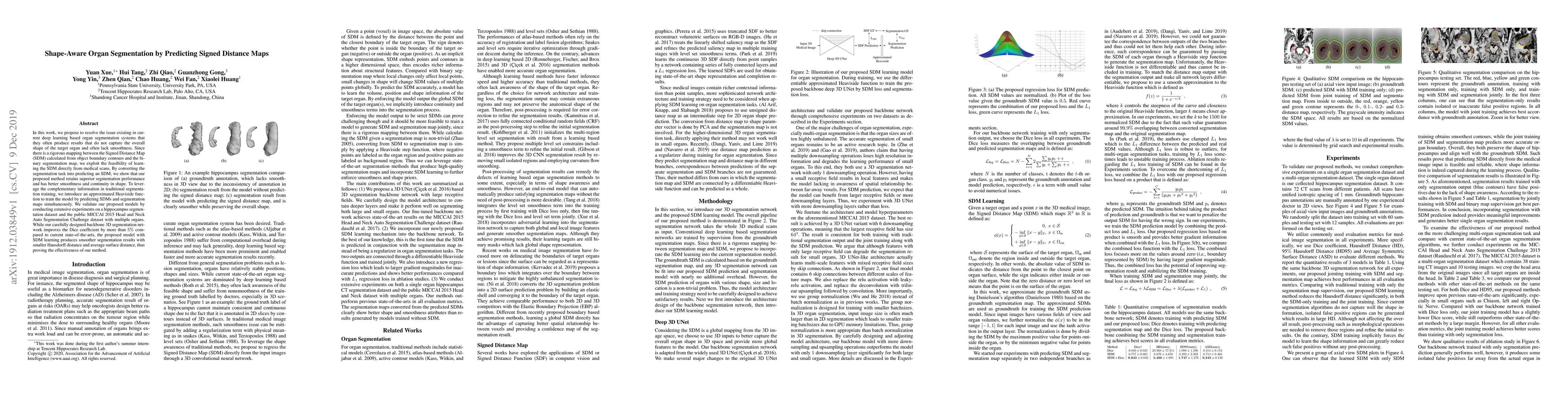 This paper proposes a novel deep learning method for organ segmentation that directly predicts Signed Distance Maps (SDMs) to better capture organ shapes and improve smoothness. The method combines SDM prediction with traditional segmentation training, achieving superior performance and more continuous segmentation results compared to existing techniques.