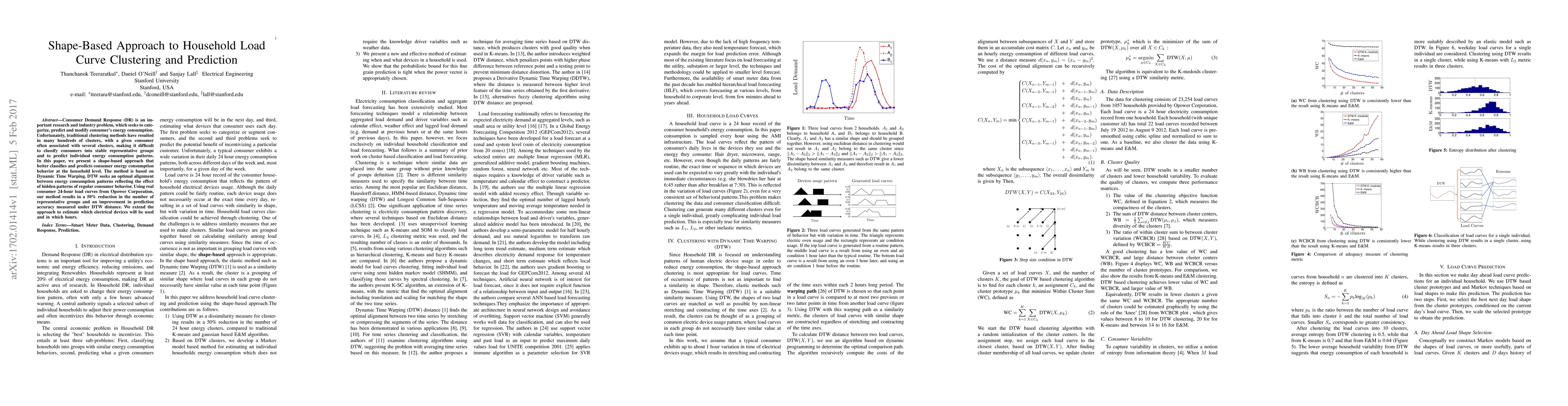Consumer Demand Response (DR) is an important research and industry problem, which seeks to categorize, predict and modify consumer's energy consumption. Unfortunately, traditional clustering methods have resulted in many hundreds of clusters, with a given consumer often associated with several clusters, making it difficult to classify consumers into stable representative groups and to predict individual energy consumption patterns. In this paper, we present a shape-based approach that better classifies and predicts consumer energy consumption behavior at the household level. The method is based on Dynamic Time Warping. DTW seeks an optimal alignment between energy consumption patterns reflecting the effect of hidden patterns of regular consumer behavior. Using real consumer 24-hour load curves from Opower Corporation, our method results in a 50% reduction in the number of representative groups and an improvement in prediction accuracy measured under DTW distance. We extend the approach to estimate which electrical devices will be used and in which hours.