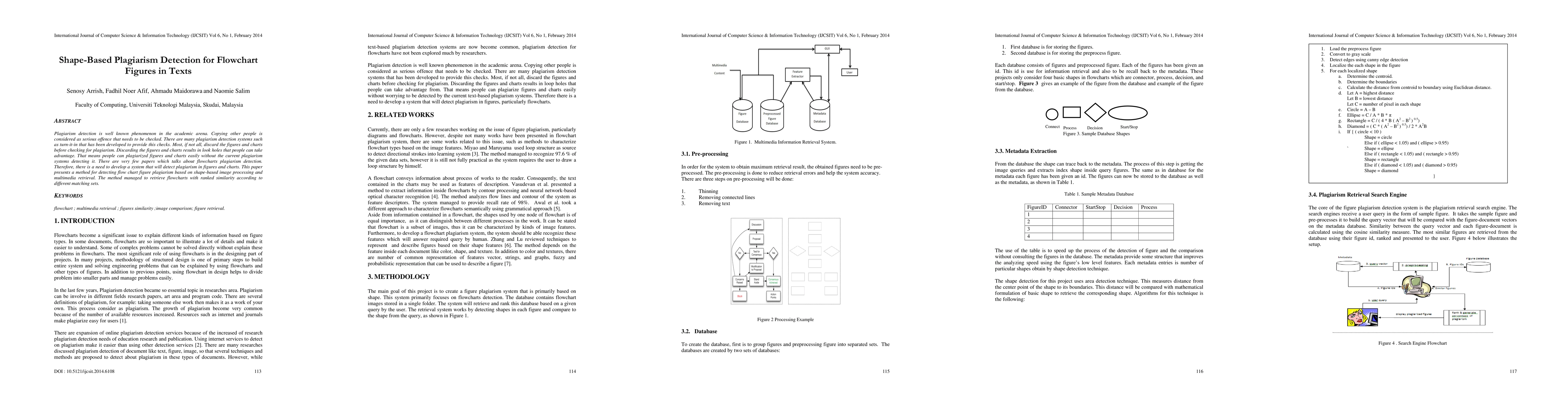 This paper proposes a shape-based method for detecting plagiarism in flowchart figures using image processing and multimedia retrieval techniques. The system aims to close the loophole in existing plagiarism detection systems that ignore figures and charts, thereby enabling the detection of plagiarized flowcharts.